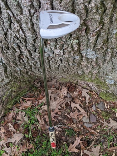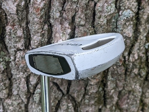 A vendre est un putter droit TaylorMade Corza Ghost 2011 34" blanc d'occasion.