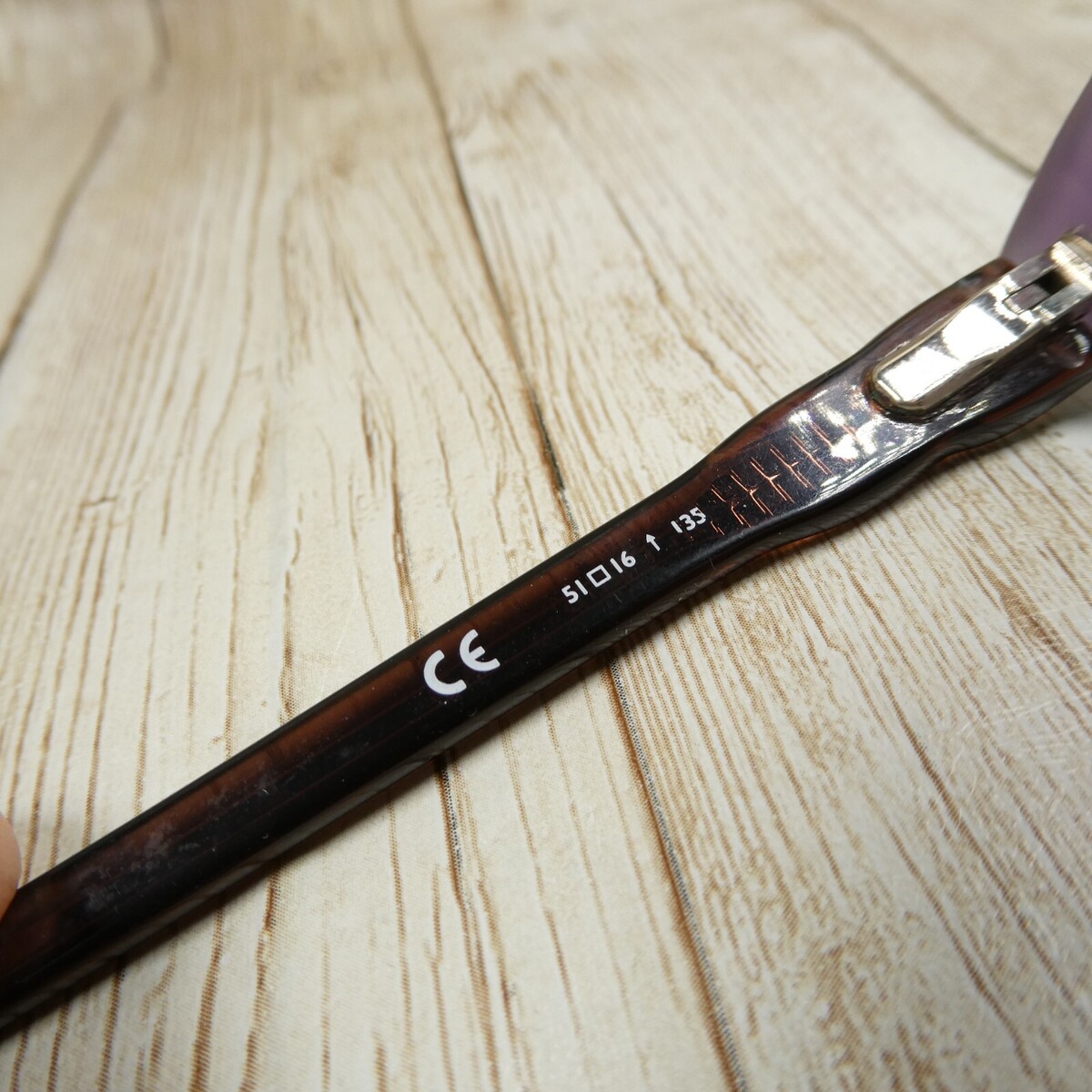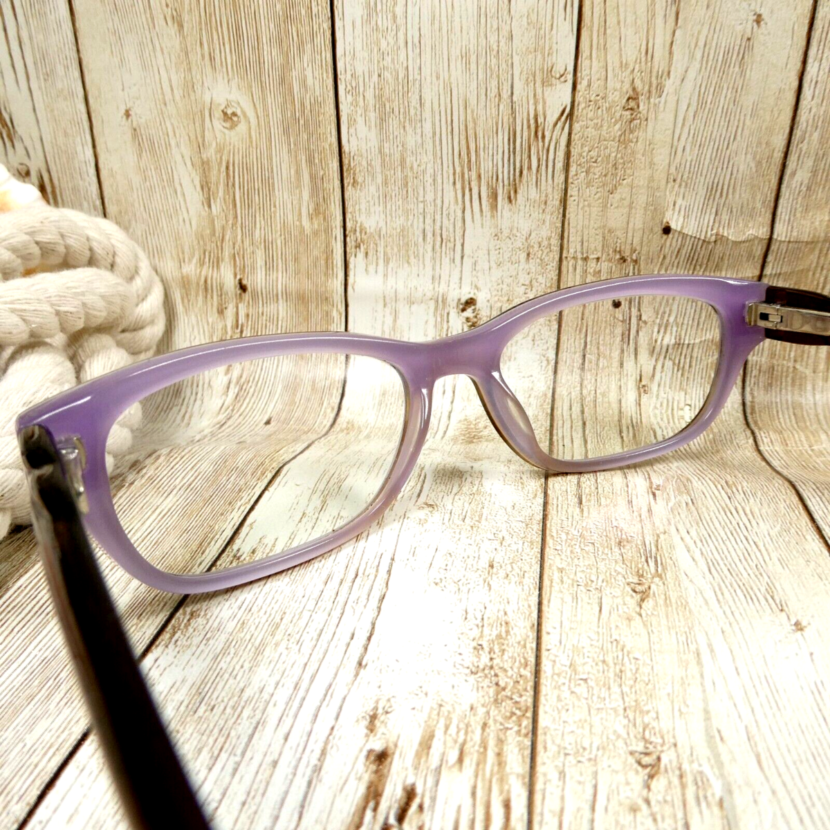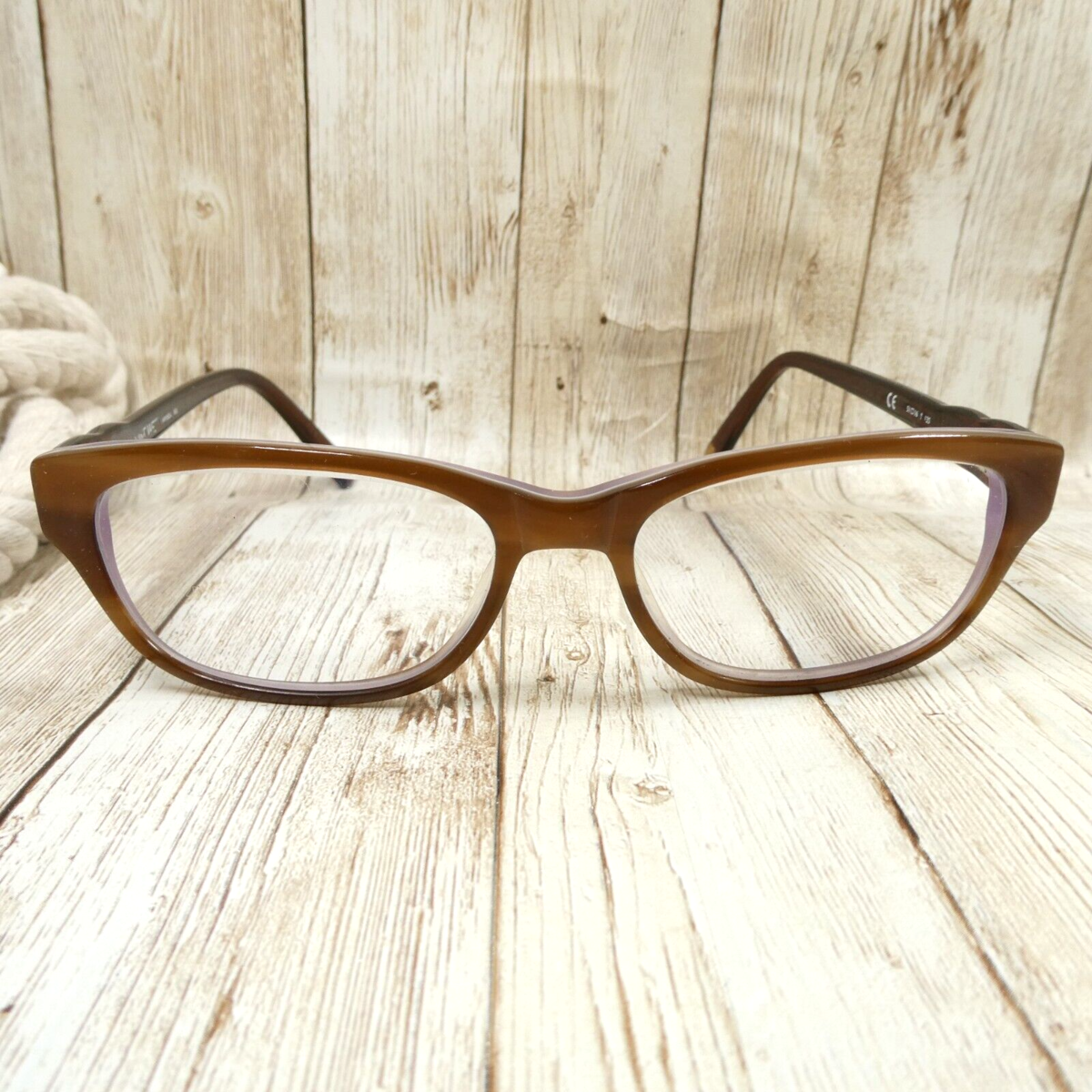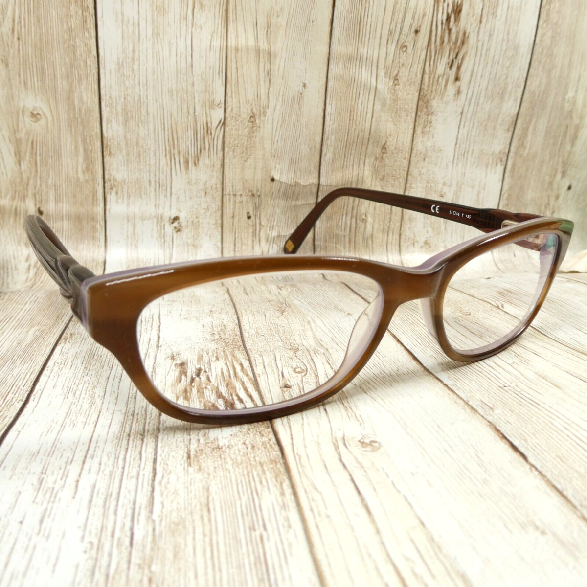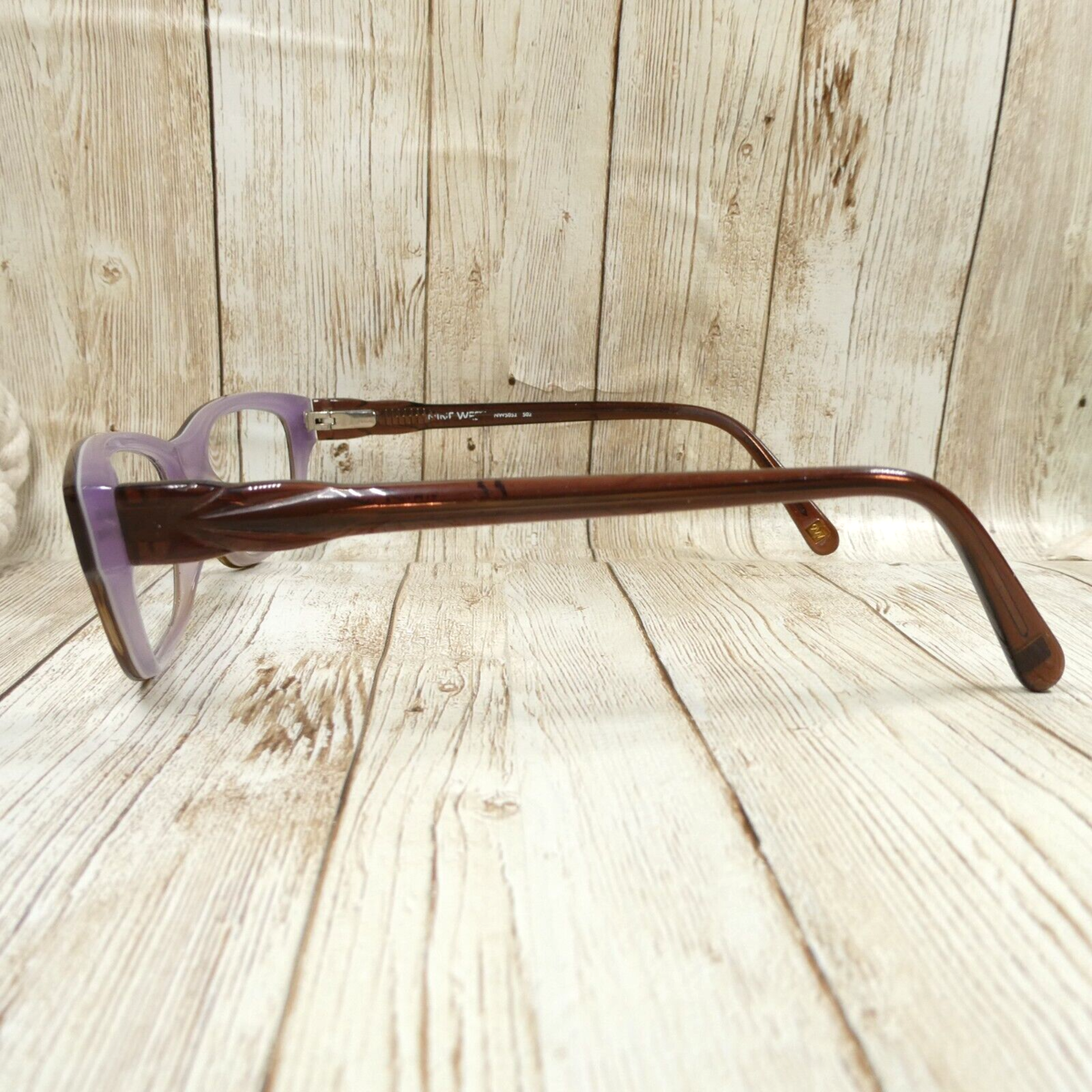 Brown-over-translucent violet/lilac acetate frames.