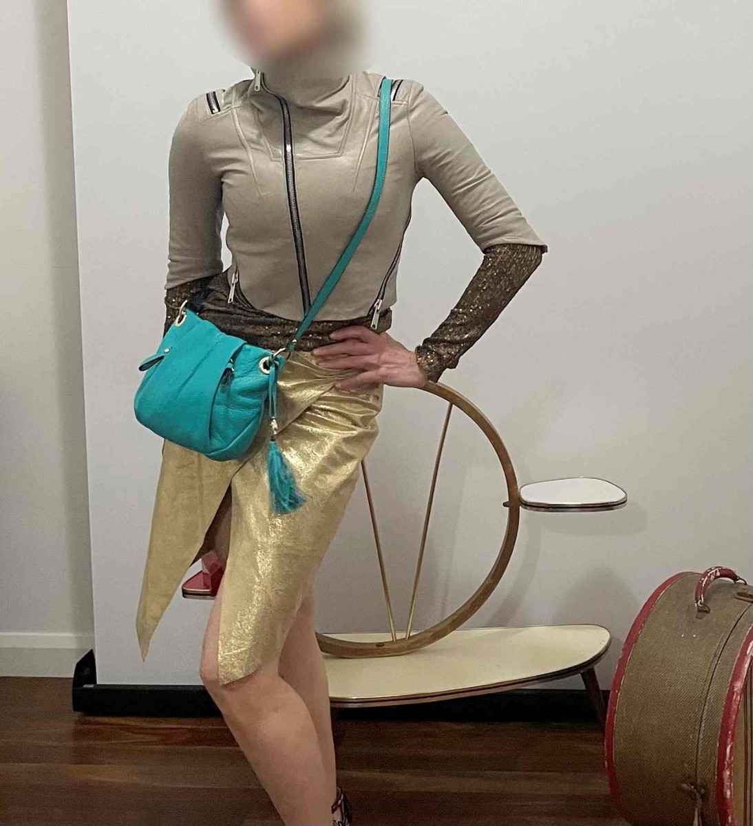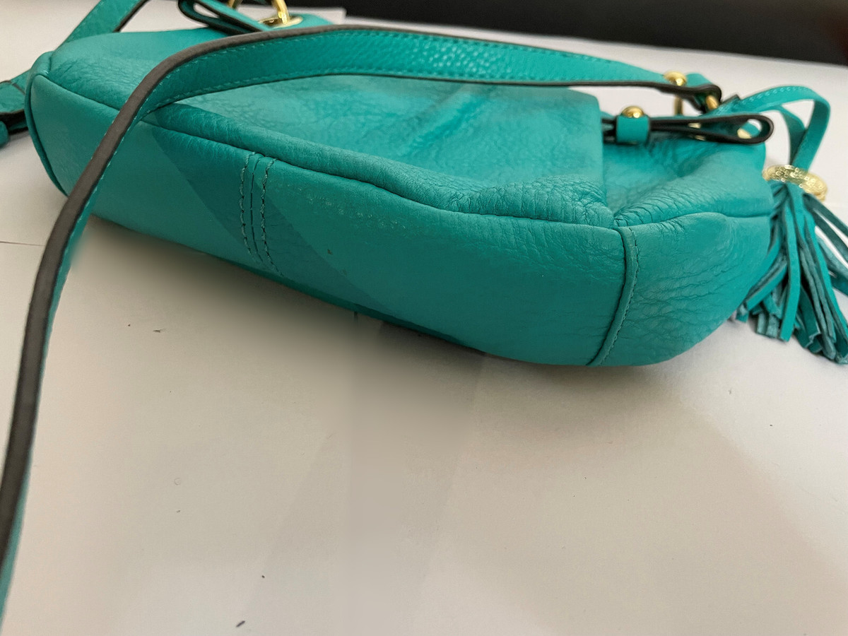 Sensational beautiful turquoise greenish blue leather crossbody bag. Lots zipped pockets - two outside and one inside
