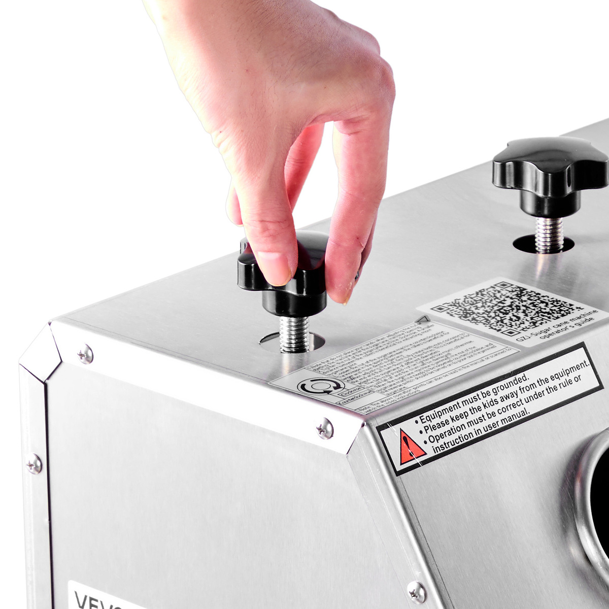 • Adjustable Roller Gap: This commercial sugar cane juicer features a top-mounted pressure knob that lets you manually adjust the roller gap based on cane size—tighten for maximum juice, loosen to prevent clogging and ensure smooth operation