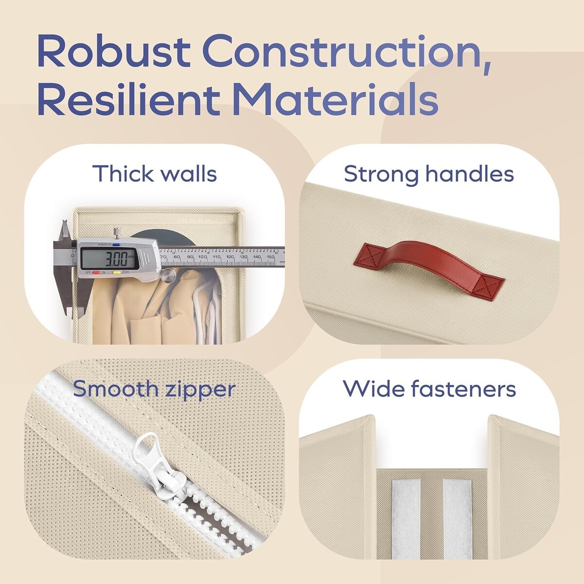 Reinforced handles: For easy transport and removal from shelves or closets.