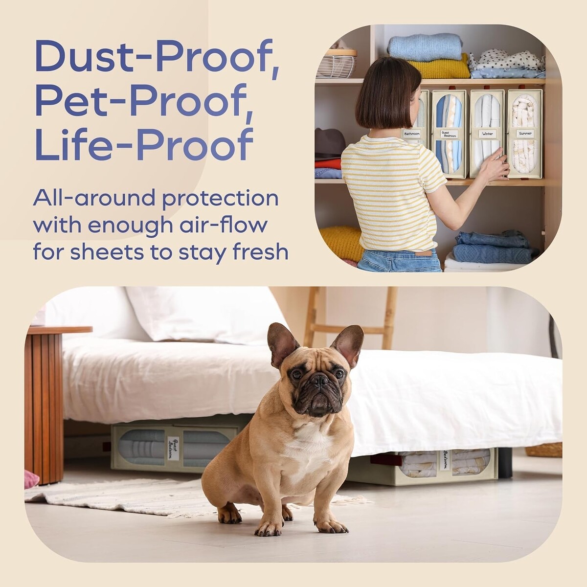Protection against dust: Breathable design keeps linens fresh and free from pet hair.