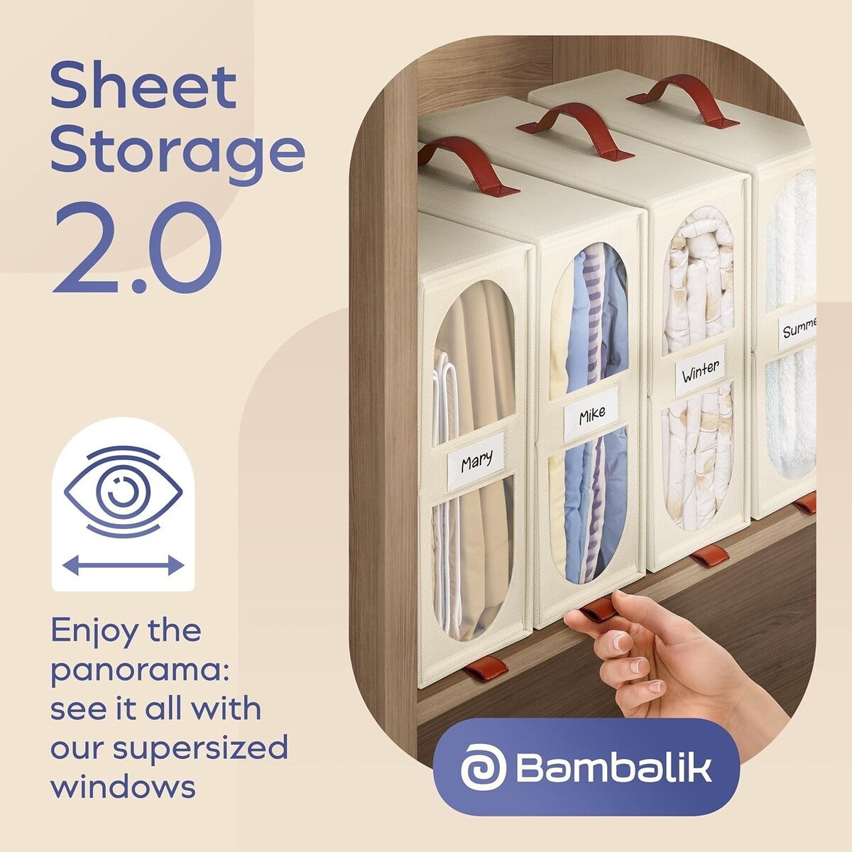 Bed Sheet Organizer Storage Boxes Set of 4 Transparent Windows Cream 15x13x5