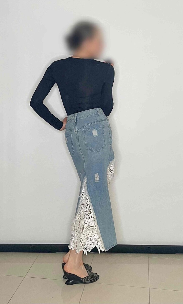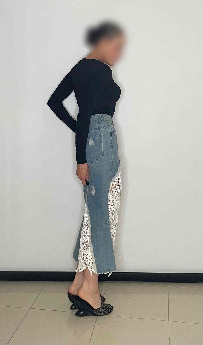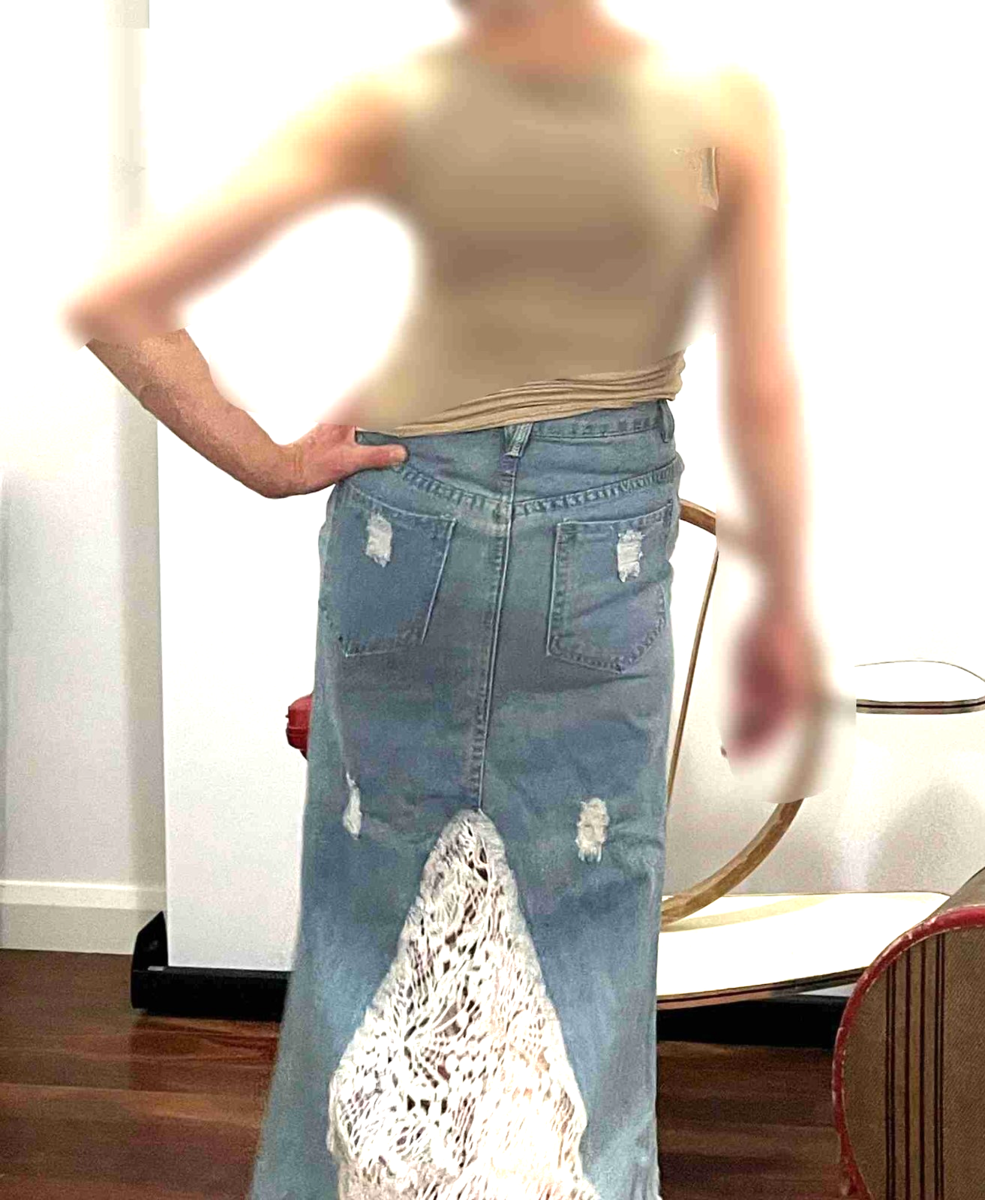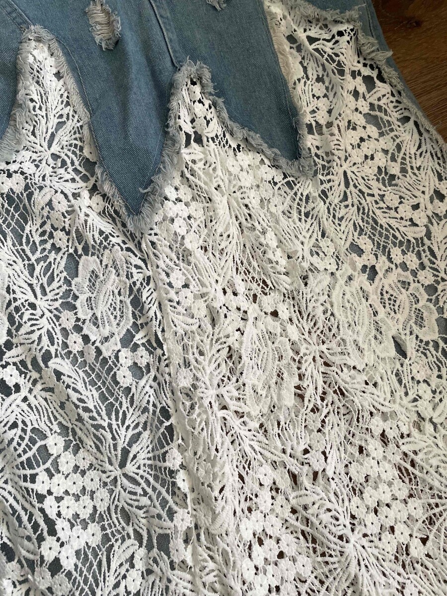 Denim and Lace Midi Skirt Boho Vintage Skirt OFFER WELCOME!
