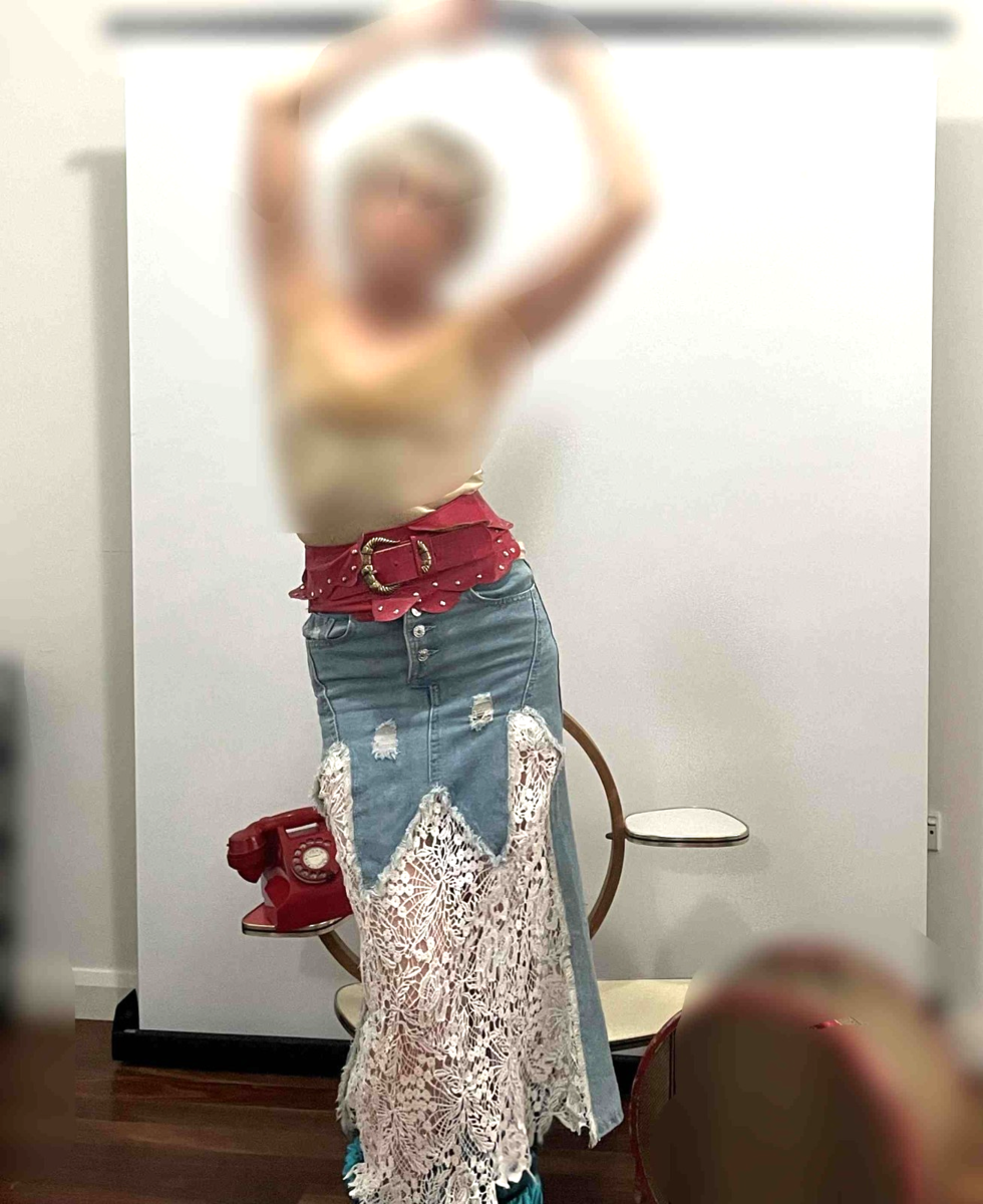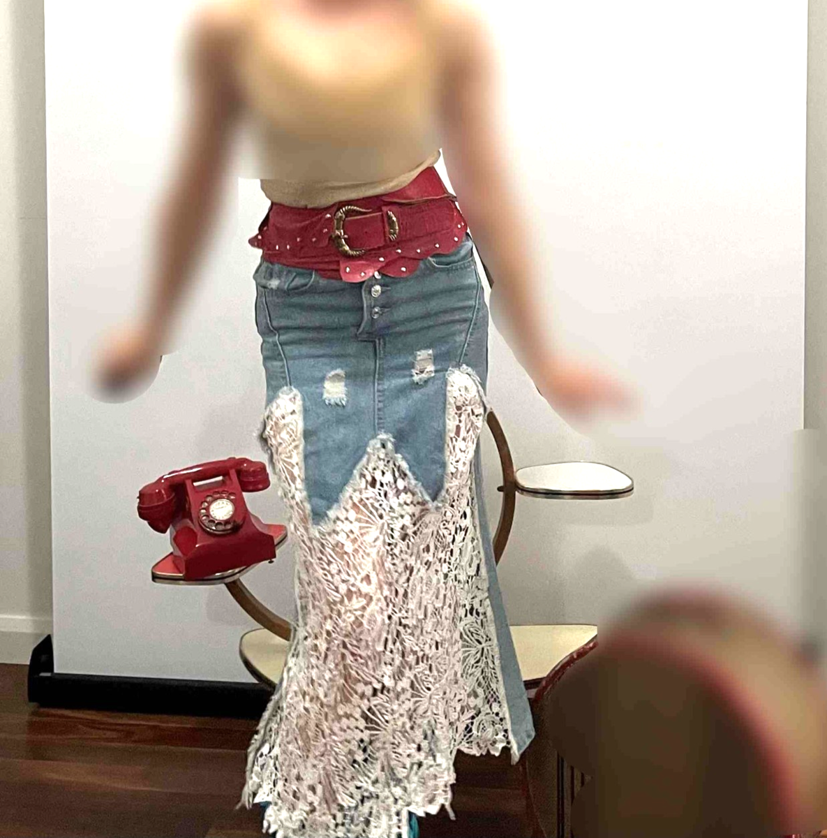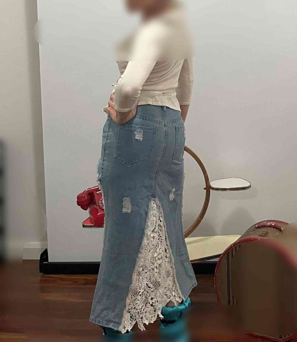 Denim and Lace Midi Skirt Boho Vintage Skirt OFFER WELCOME!