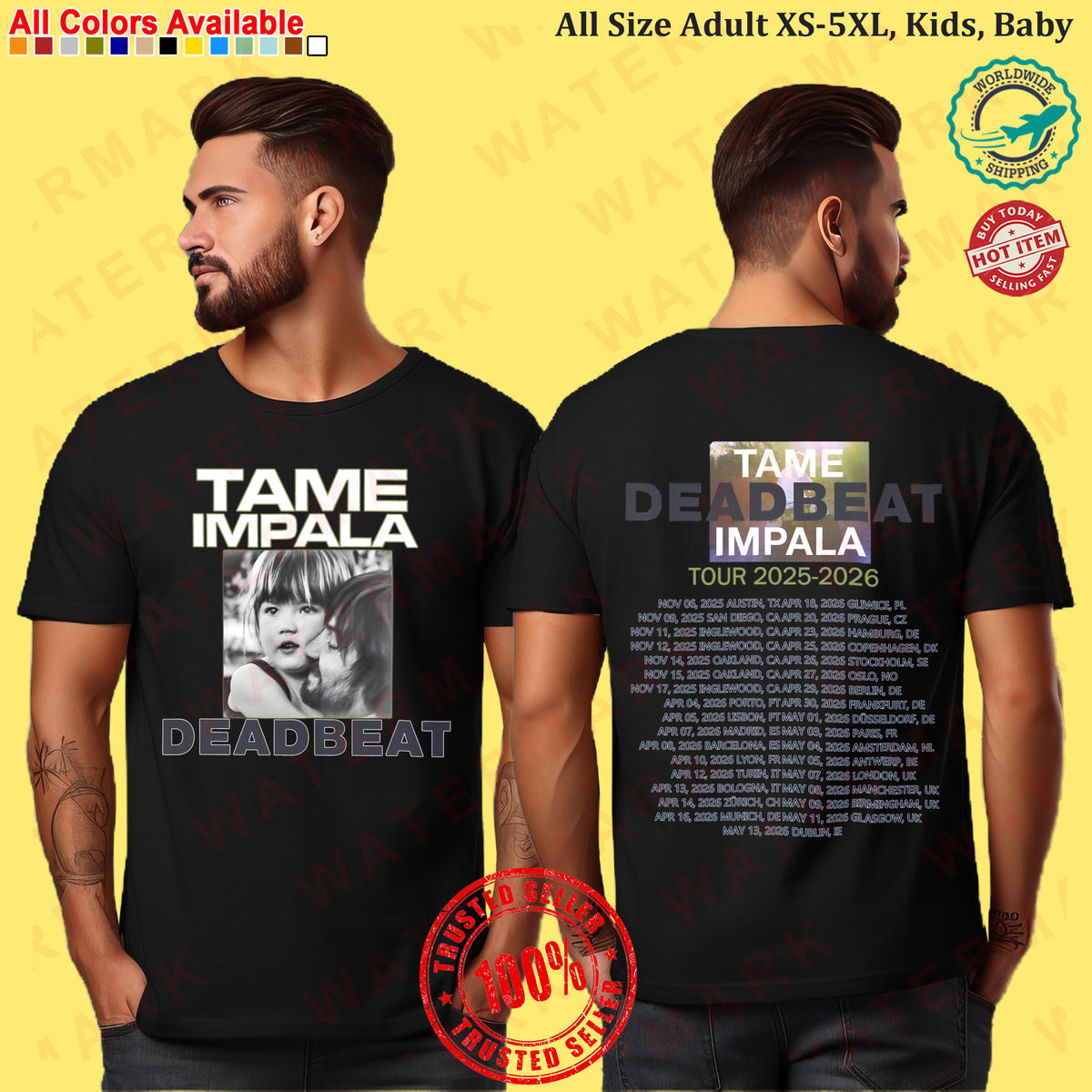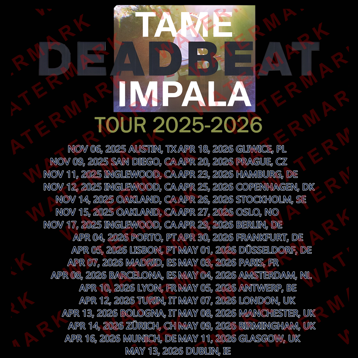 TAME IMPALA DEADBEAT TOUR 2025-2026 T-shirt All Size Adult S-5XL Kids Babies Tod