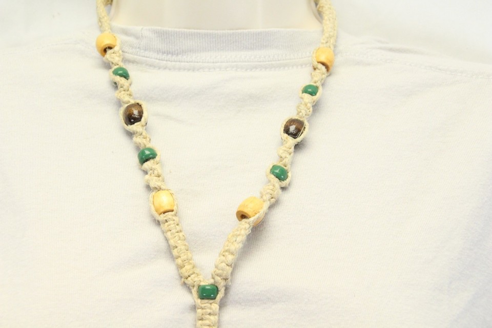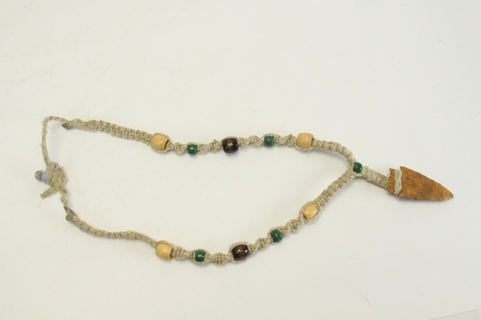 Authentic Arrowhead Pendant Necklace Wooden Beads on a Handmade Braided Cord