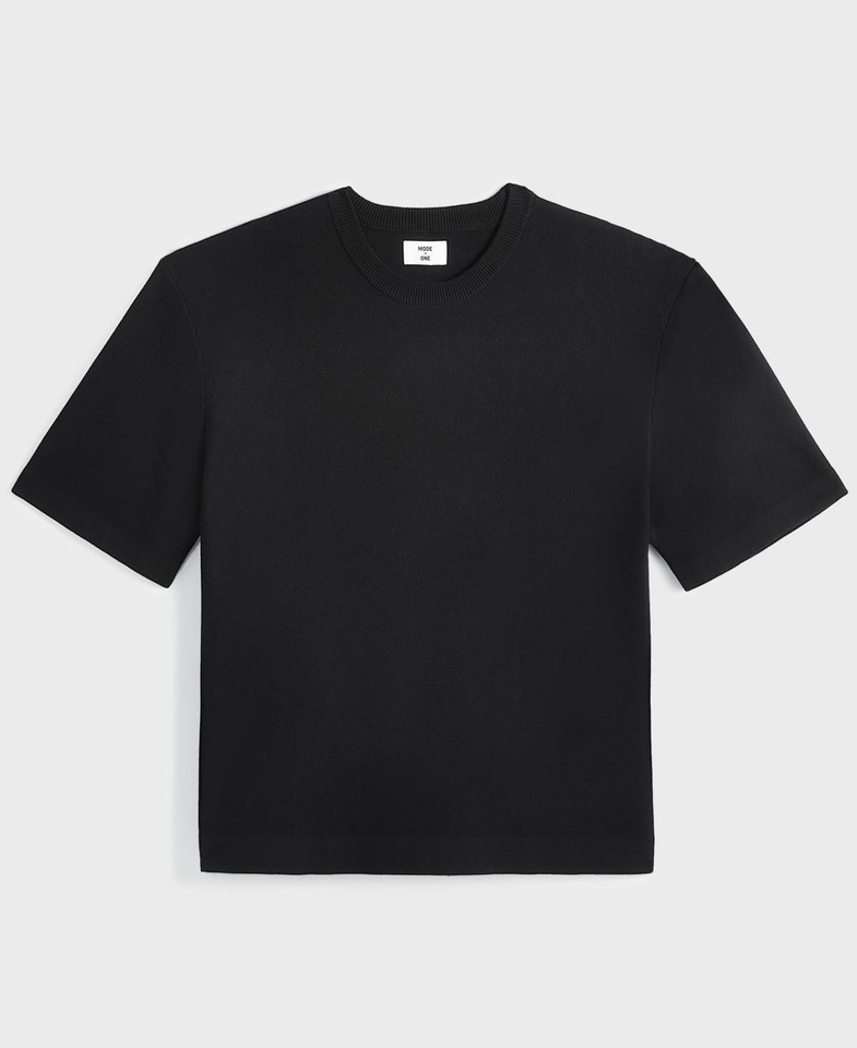 Mode of One Sweater Deep Black Size Medium Relax-Fit Short-Sleeve Crewneck Mens