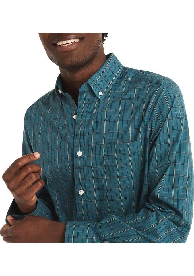 Nautica Mens Wear To Work Wrinkle-Resistant Plaid Shirt Deep Atlantic-2XL