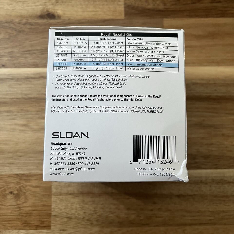 Sloan R-1005-A Regal Urinal Diaphragm Rebuild Kit, 1.0 gpf, Manual Flush Valve