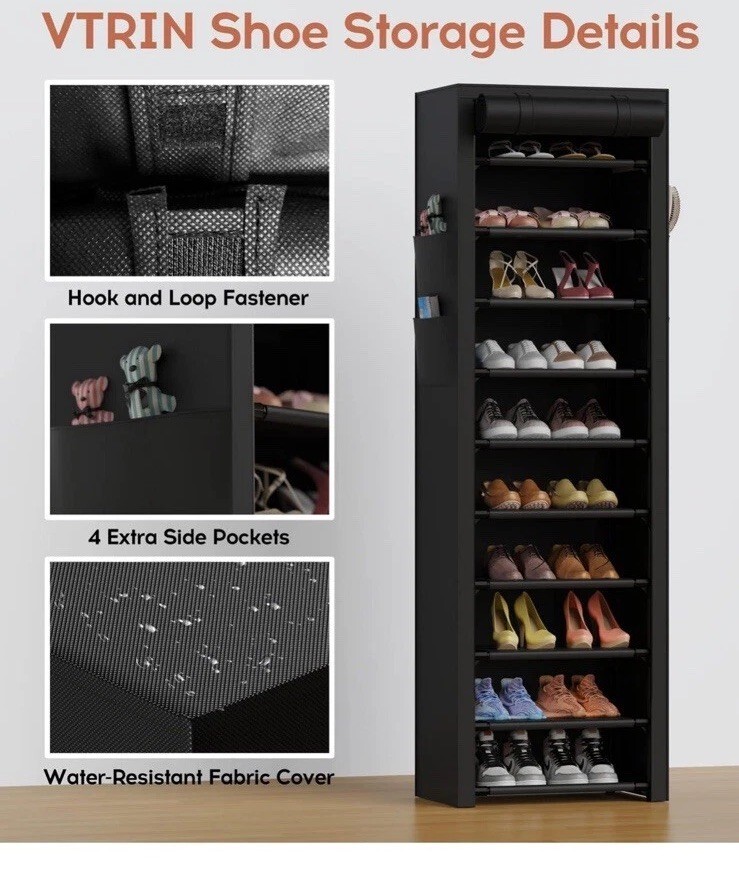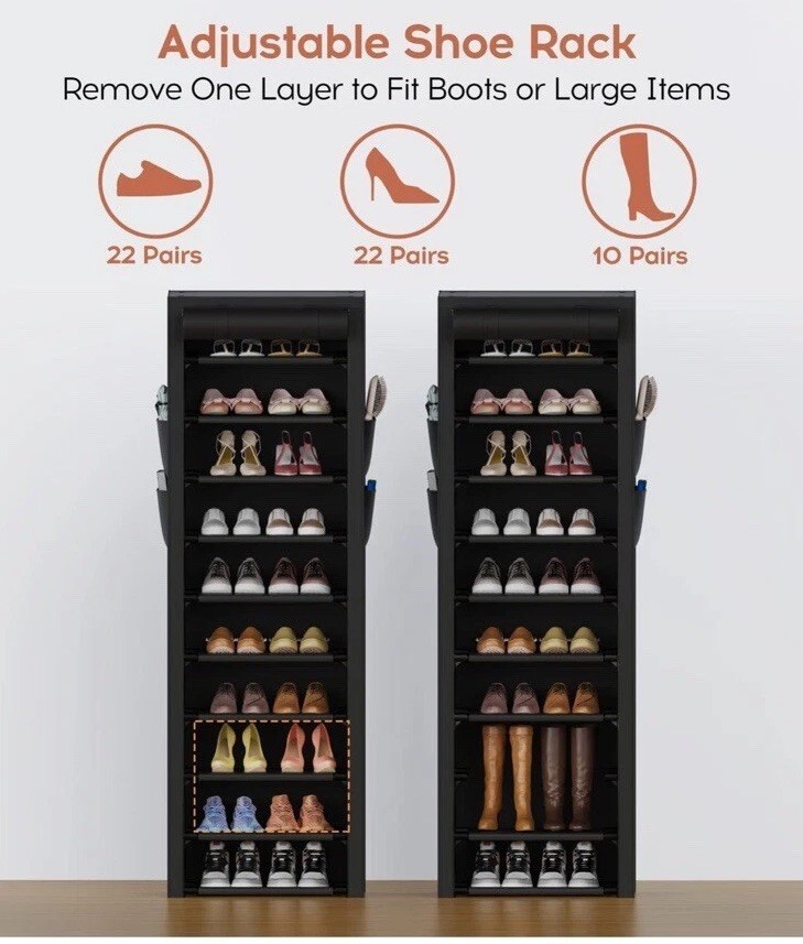 Narrow Shoe Rack with Covers 10 Tiers Tall and 48 similar items