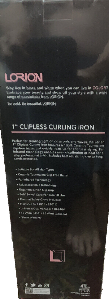 Lorion curling iron for tight or loose curls pink lace 1" clipless