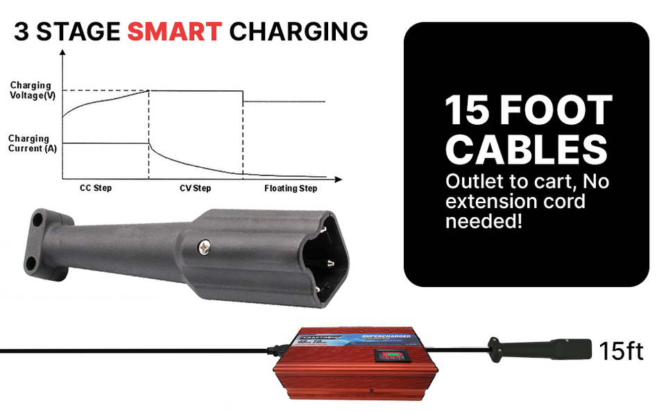 SUPERCHARGER YAHAMA G29 Golf Cart Battery Charger 48 volt 48v 3 Pin Plug