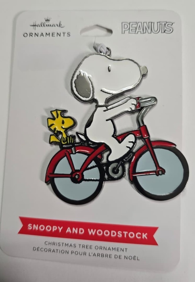 Happiness is having good friends to ride through life together. Peanuts fans of all ages will love to hang this metal and plastic Christmas tree ornament that features Charlie Brown's beloved beagle, Snoopy, and his feathered friend Woodstock riding a red bicycle with dimensional accents.