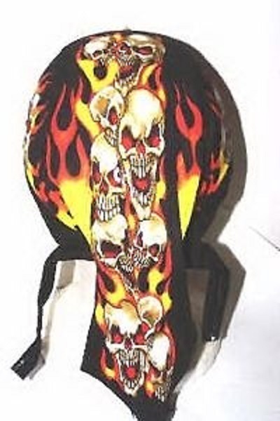 SCREAMING FLAMES Multi SKULLS FITTED BANDANA w/TIES DOO DO DU RAG Head Wrap Cap