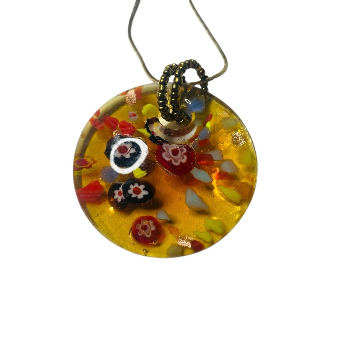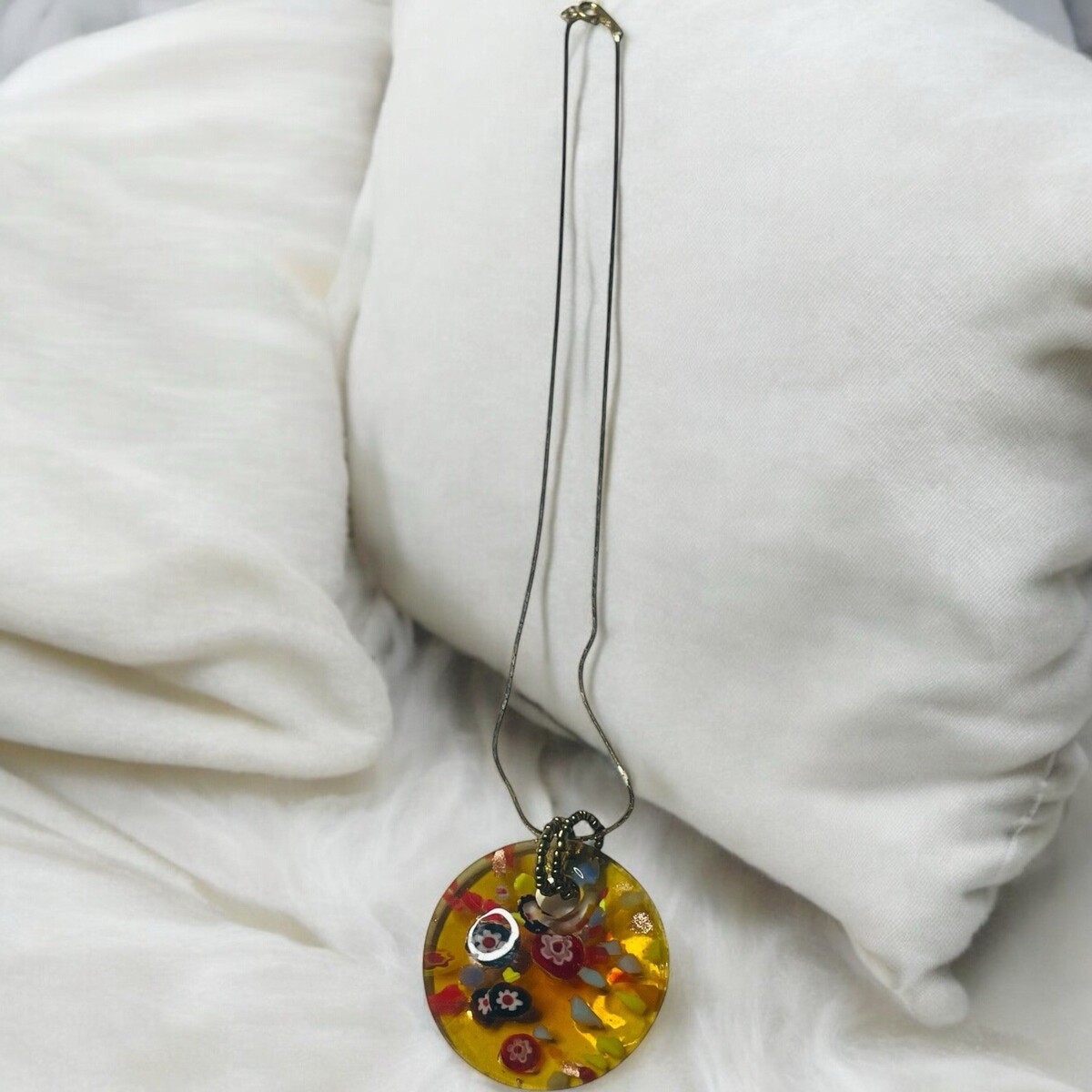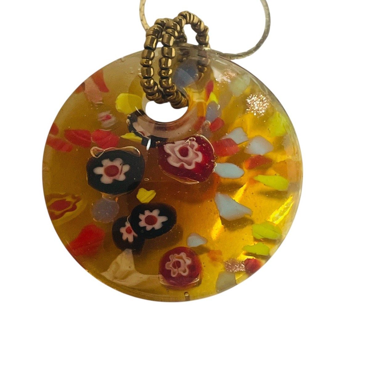 Vtg Lucite Colorful Round Millifiore Style Pendant Gold Necklace Korea