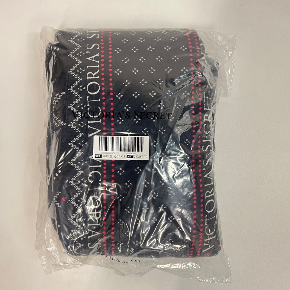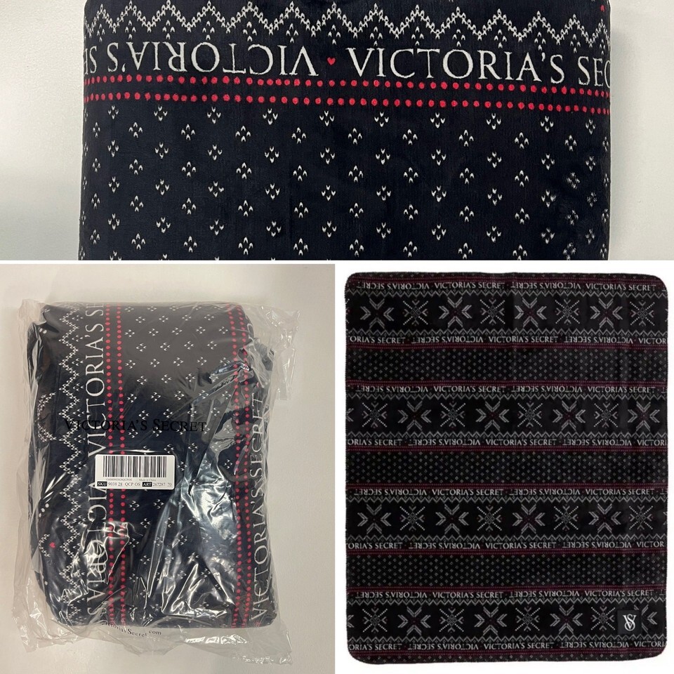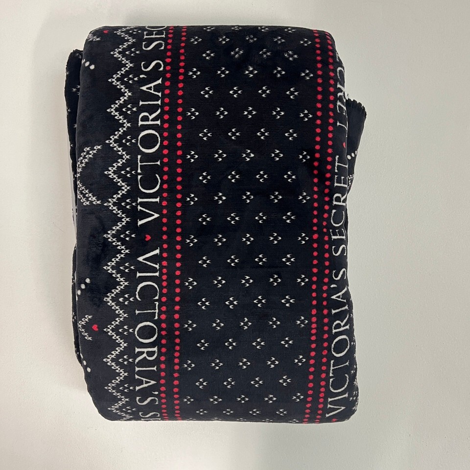 New Victoria's Secret Cozy Sherpa Throw Blanket Black Red Snowflakes Holiday