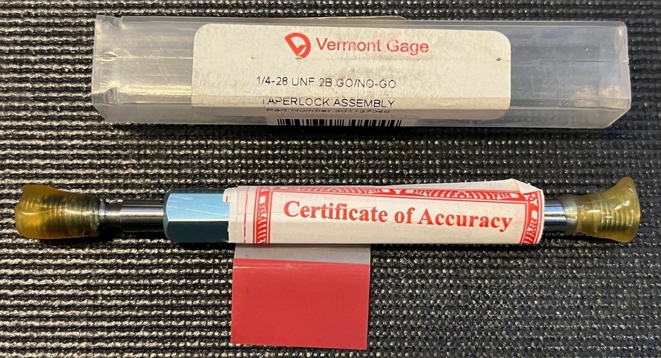 Vermont Gage 1/4-28 UNF 2B Go/No-Go Taperlock Plug Gage Assembly 301127040 NEW