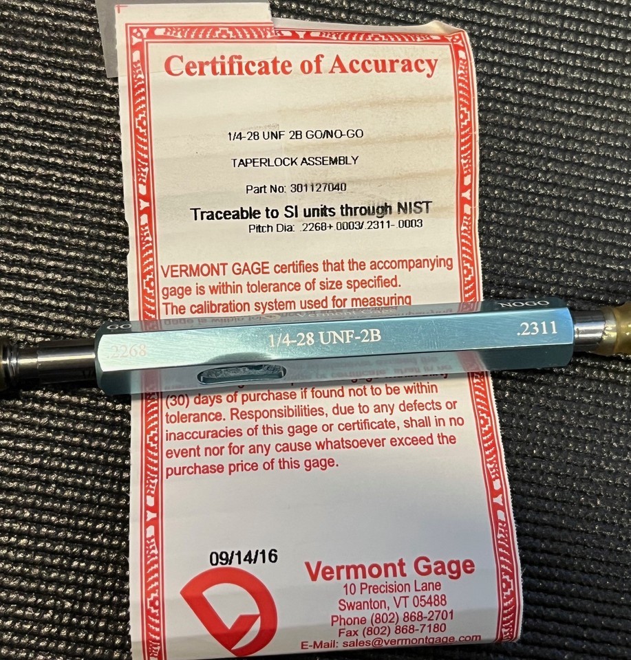 Vermont Gage 1/4-28 UNF 2B Go/No-Go and 34 similar items