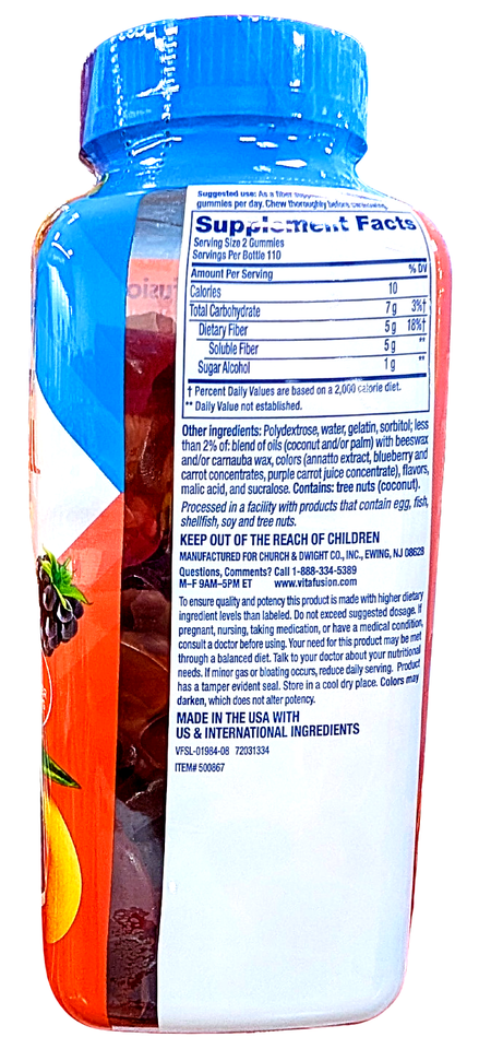 Vitafusion Fiber Well Sugar Free Gummy Vitamin Supplement 220 Count EXP 12/2026