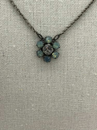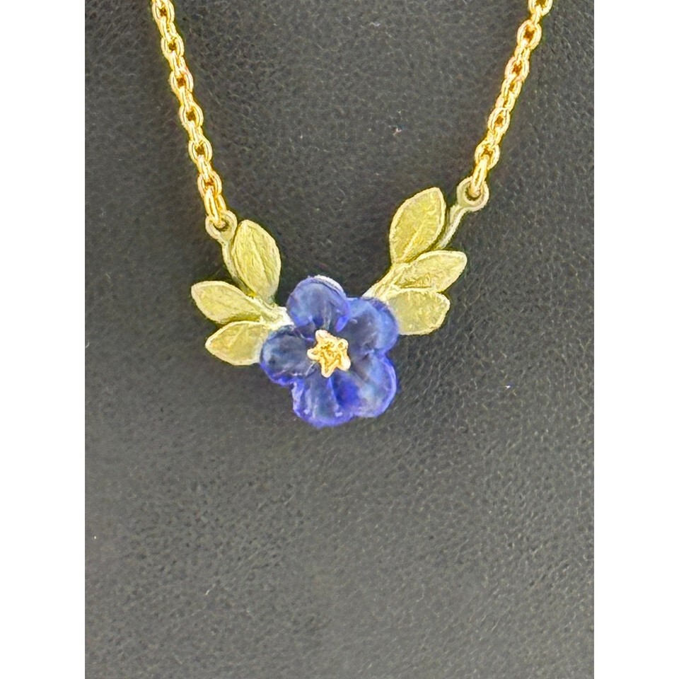 Michael Michaud Blue Violet Flower Bar Pendant Necklace