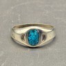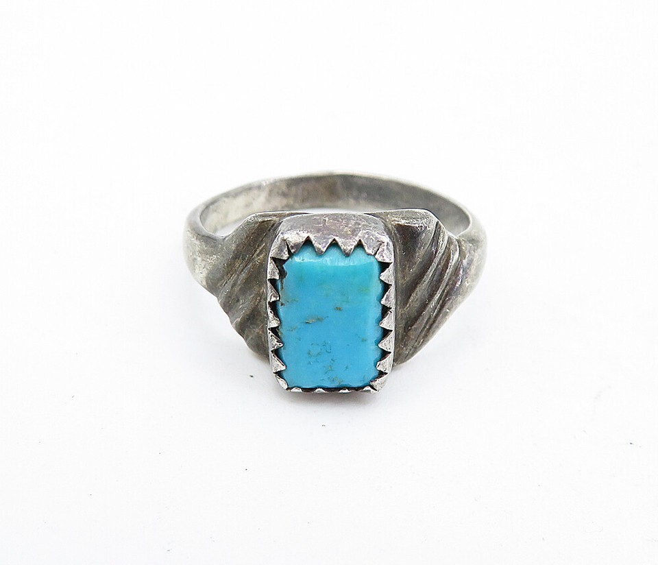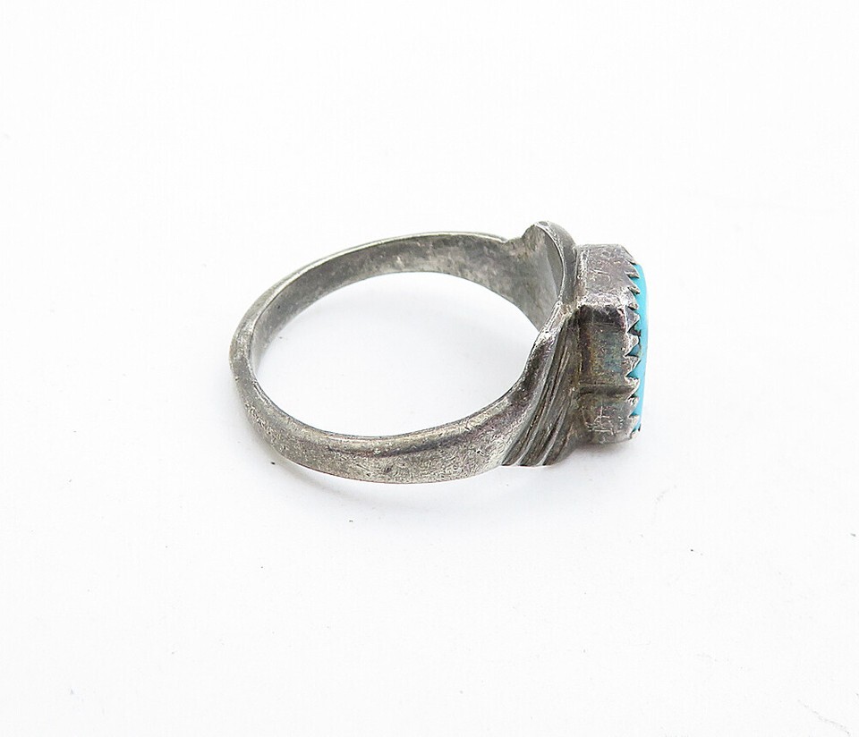 NAVAJO 925 Sterling Silver Vintage Turquoise Dark Tone Band Ring Sz 5 RG5516