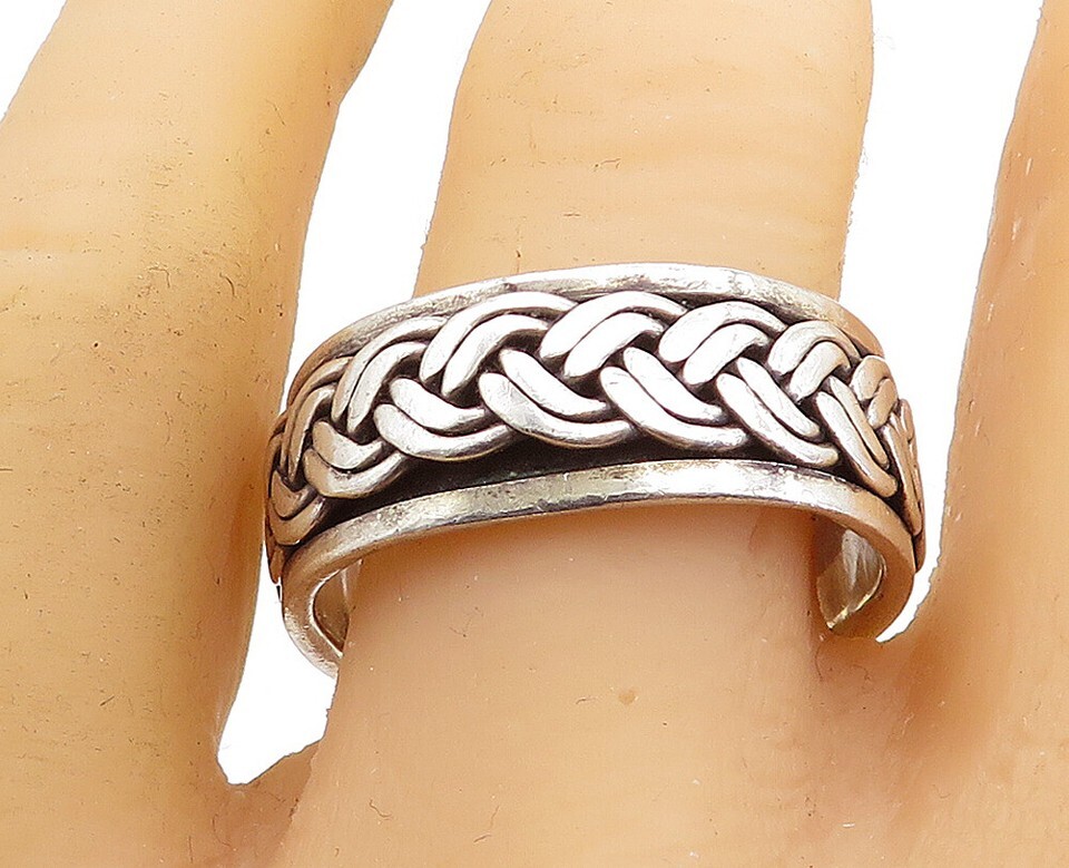 925 Sterling Silver Vintage Raised Braided Design Band Ring Sz 12.5 RG5857