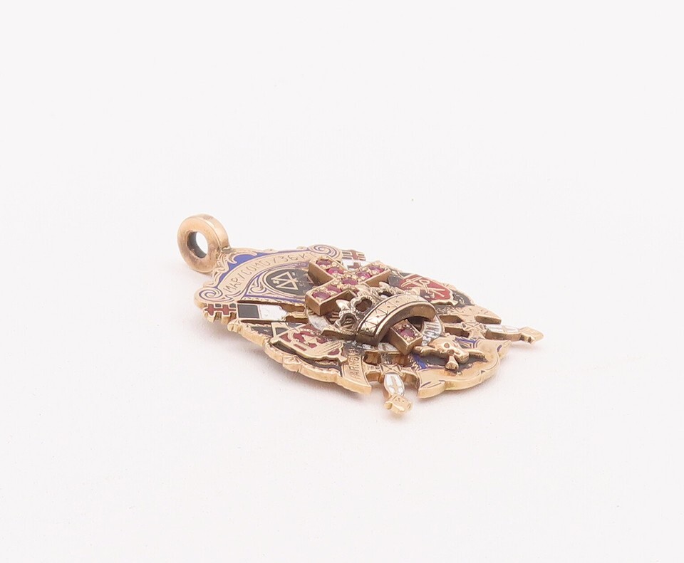 Authenticity Guarantee 14K GOLD Vintage Pendant Gemstone & Enamel Inlay York...