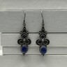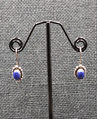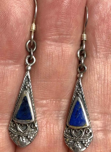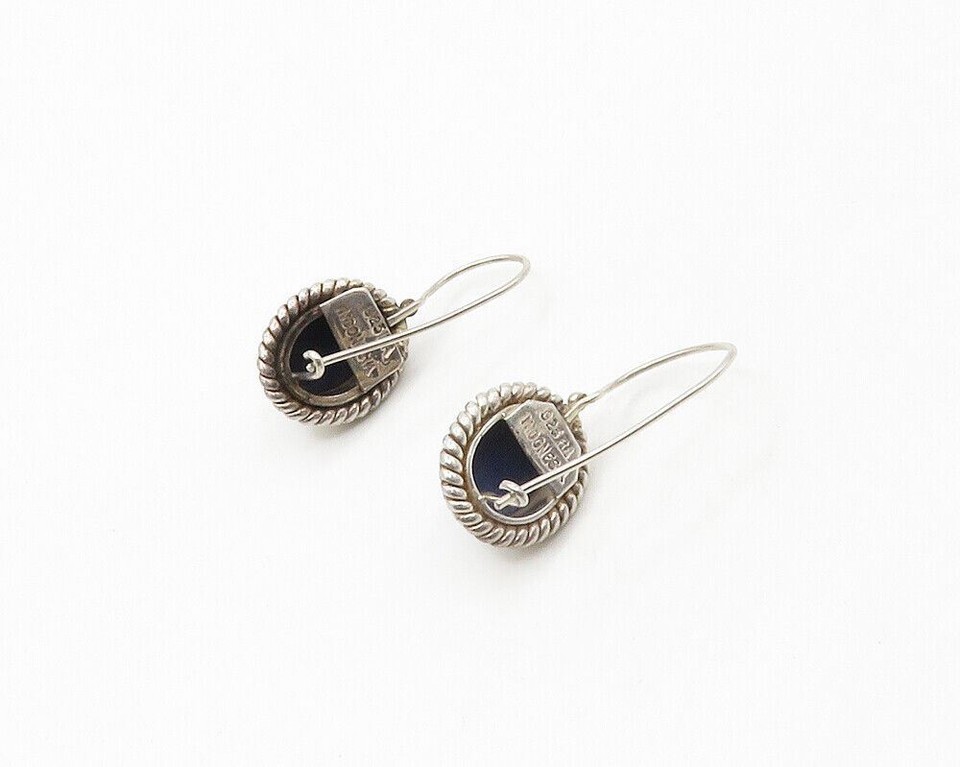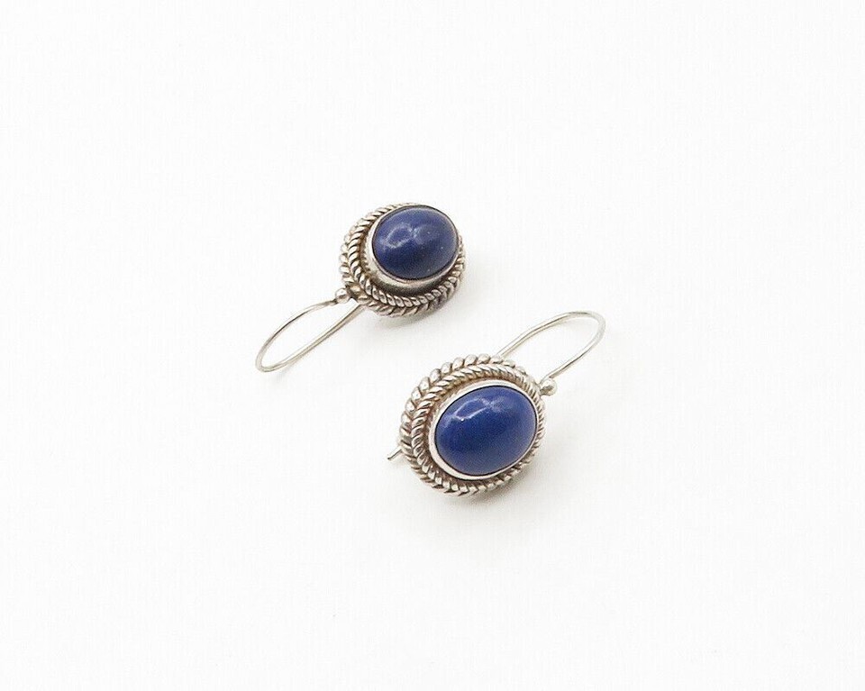 BALI 925 Sterling Silver Vintage Cabochon Lapis Lazuli Drop Earrings EG8805