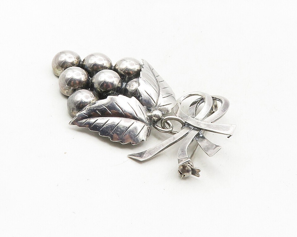 JOHN L DENMARK 925 Silver Vintage Shiny Floral Grape Bunch Brooch Pin BP3865