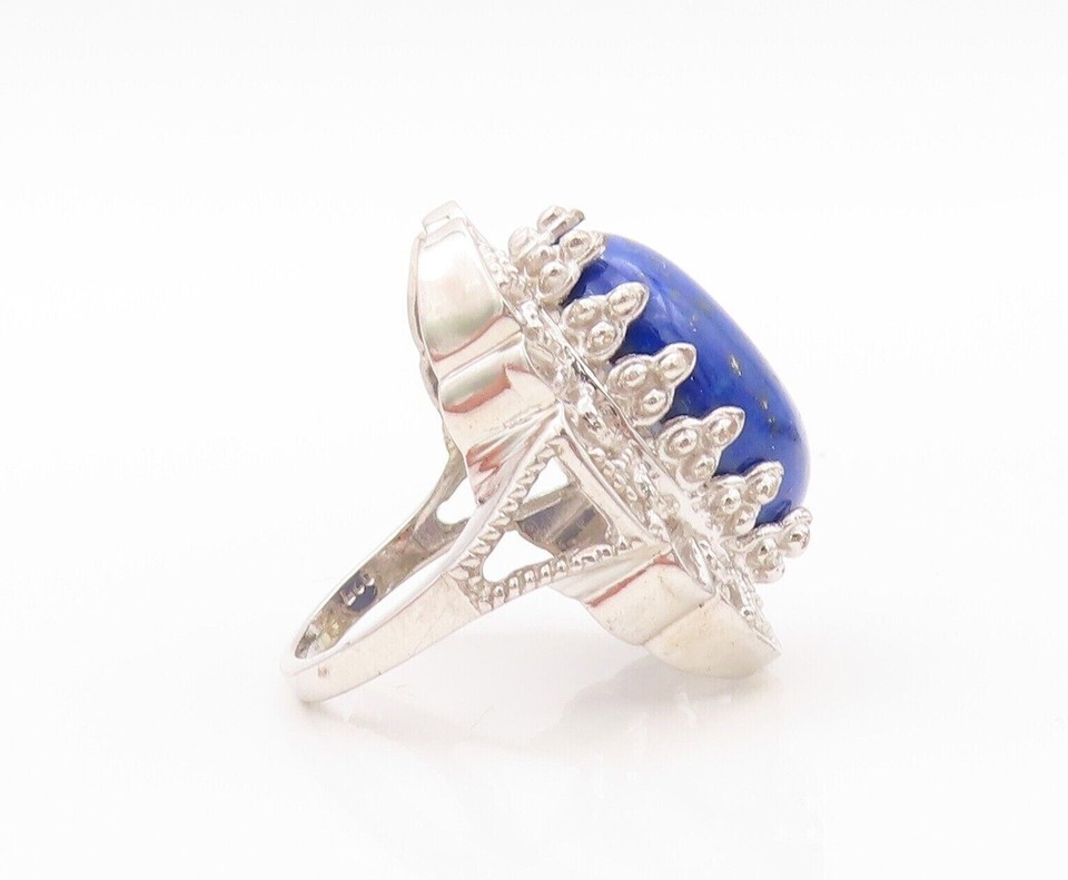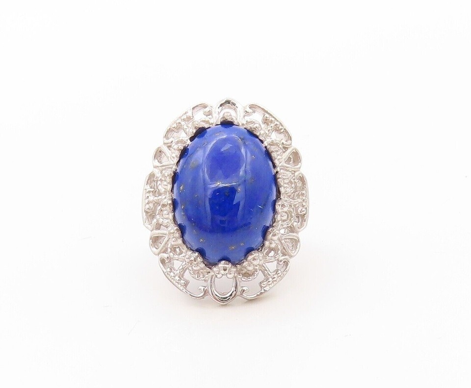 925 Sterling Silver Vintage Ring Oval Lapis Lazuli Floral Carved Sz 7 RG30177