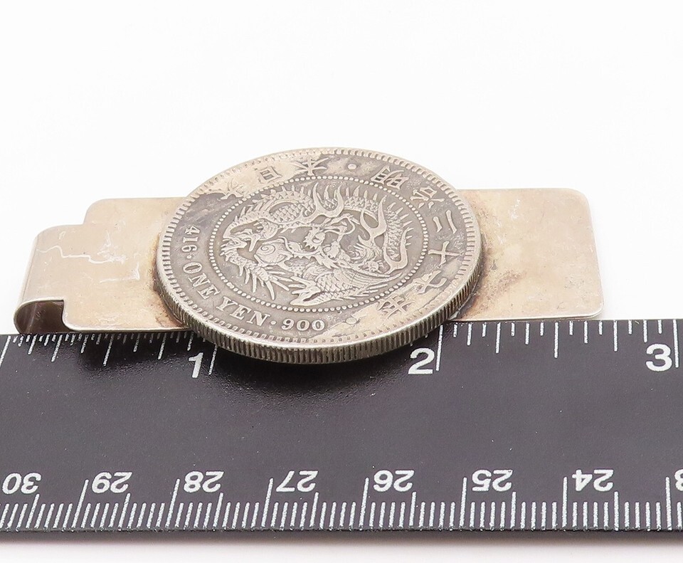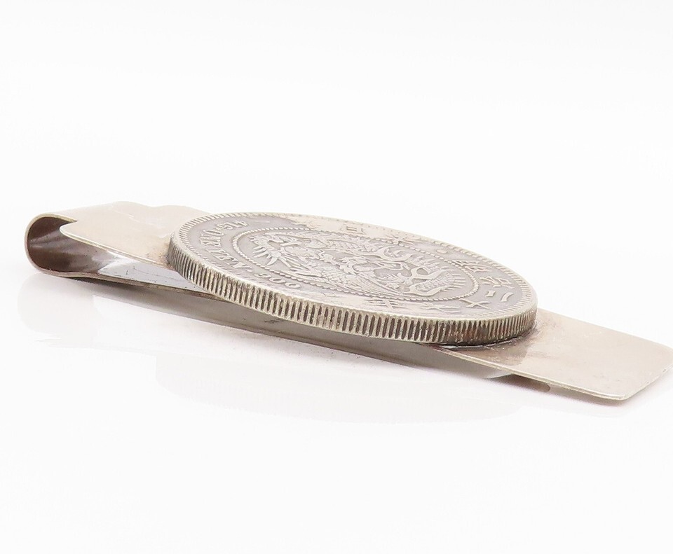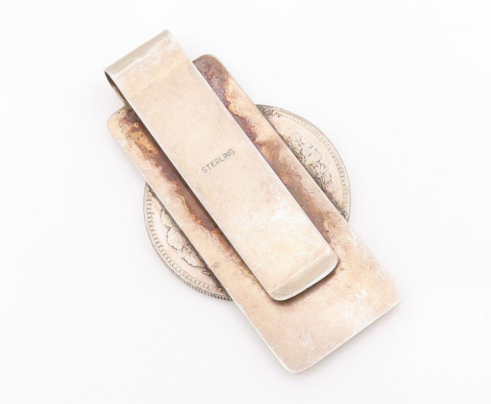 925 Sterling Silver Vintage Money Clip Solid Dark Tone Chinese Export TR3875