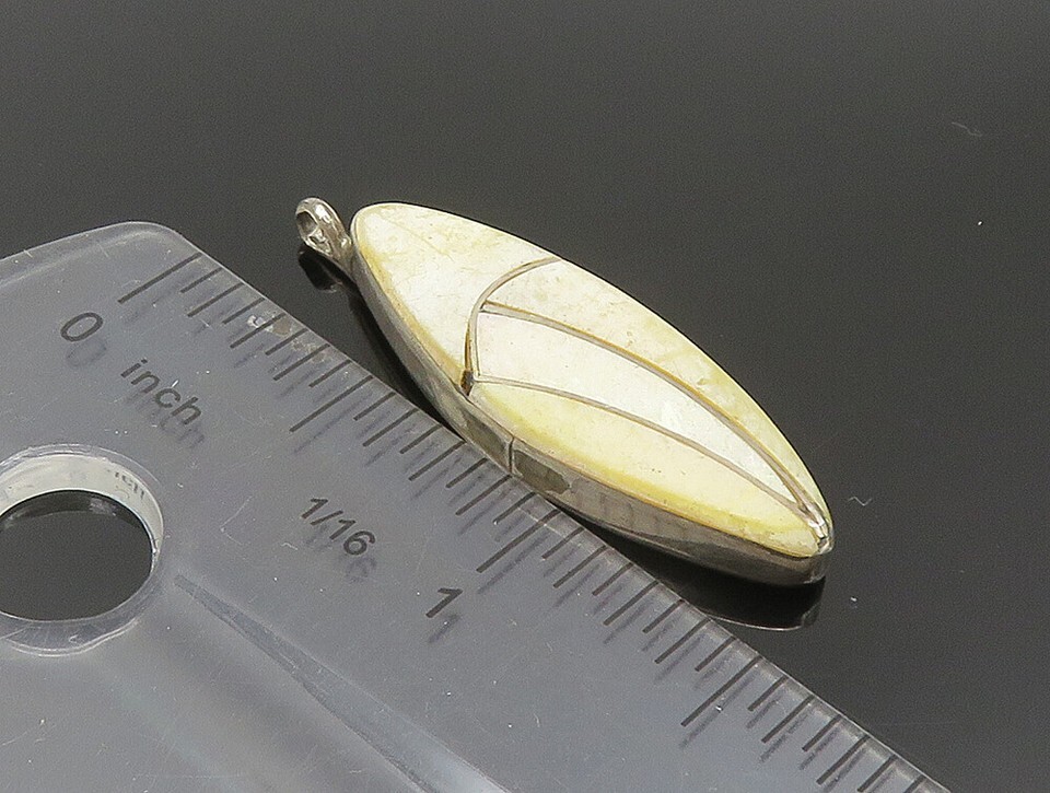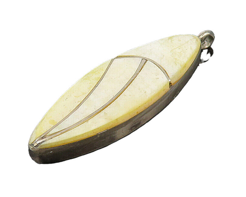 SOUTHWESTERN 925 Sterling Silver Vintage Mother Of Pearl Pendant PT19857