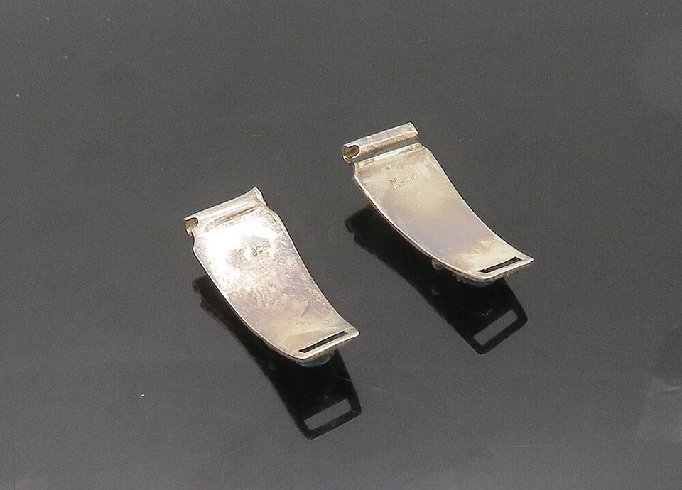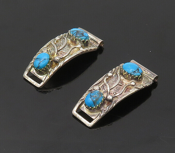 NAVAJO 925 Sterling Silver Vintage Turquoise Floral Leaf Watch Clips TR2719