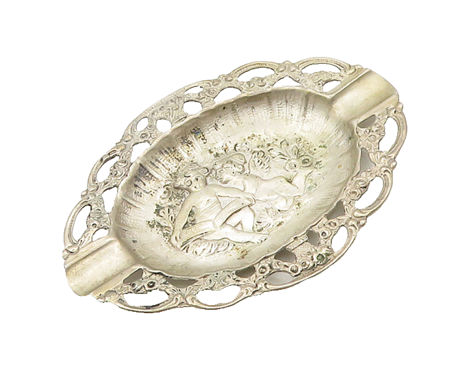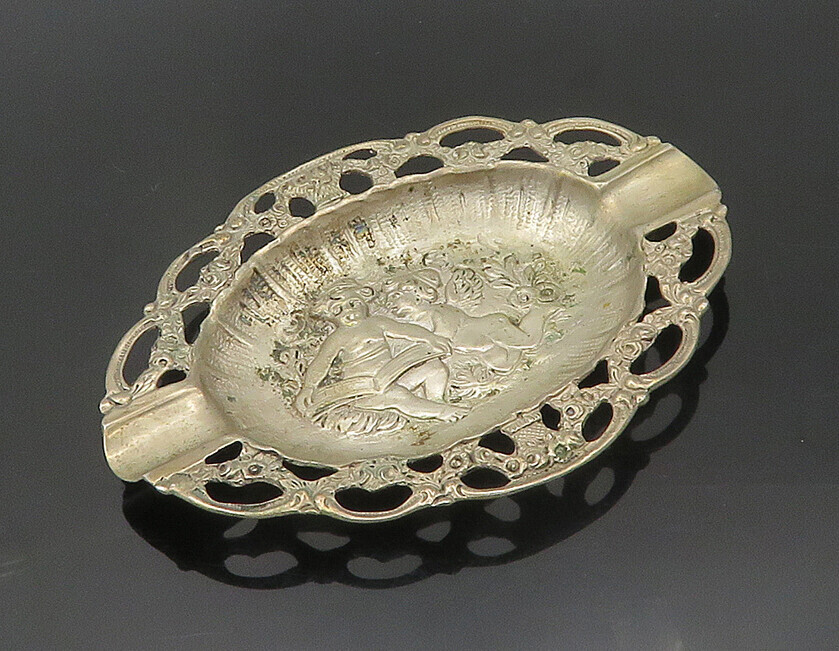 EUROPEAN 925 Sterling Silver Vintage Angels Reading Floral Ash Tray TR2642
