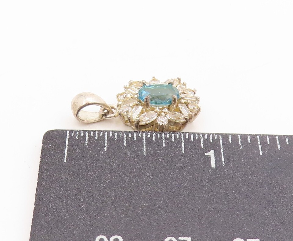 925 Sterling Silver Vintage Pendant Blue Topaz & CZ Floral Design Charm PT25139