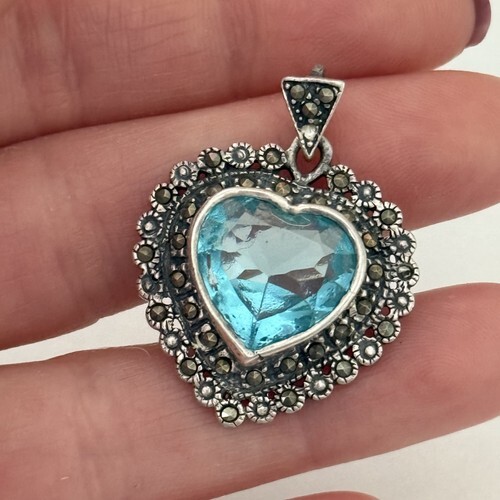 925 Sterling Silver Vintage Pendant Blue and similar items