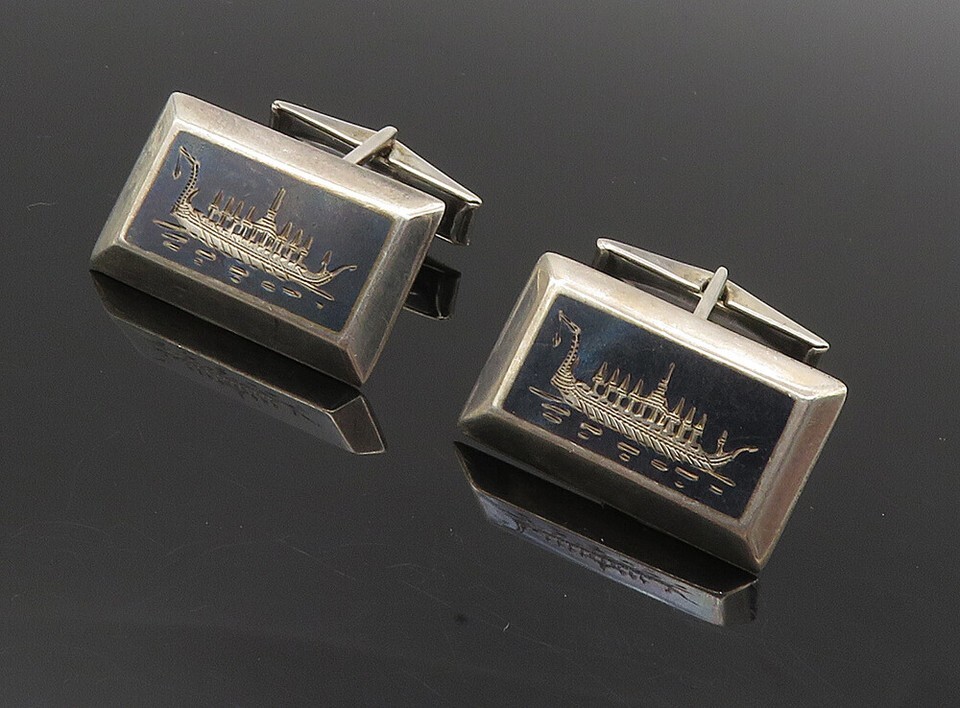 SIAM 925 Sterling Silver Vintage Enamel Dragon Boat Square Cuff Links TR1568