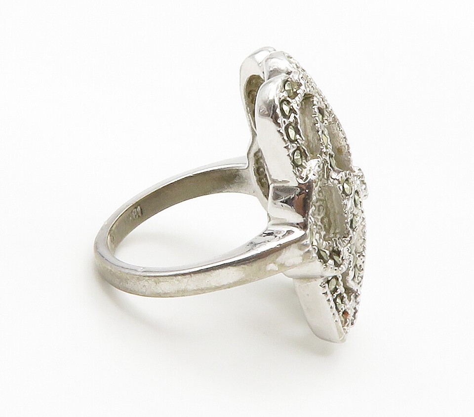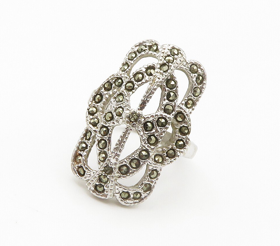 925 Sterling Silver Vintage Marcasite Open Cocktail Ring Sz 4.5 RG15059