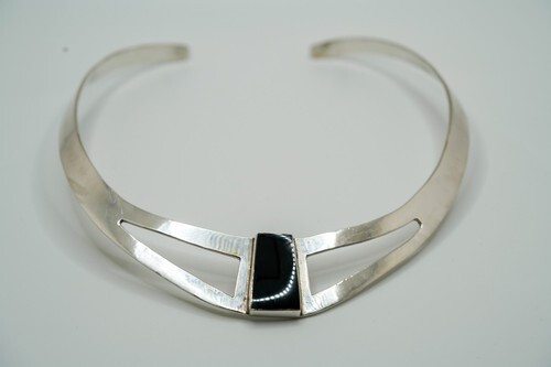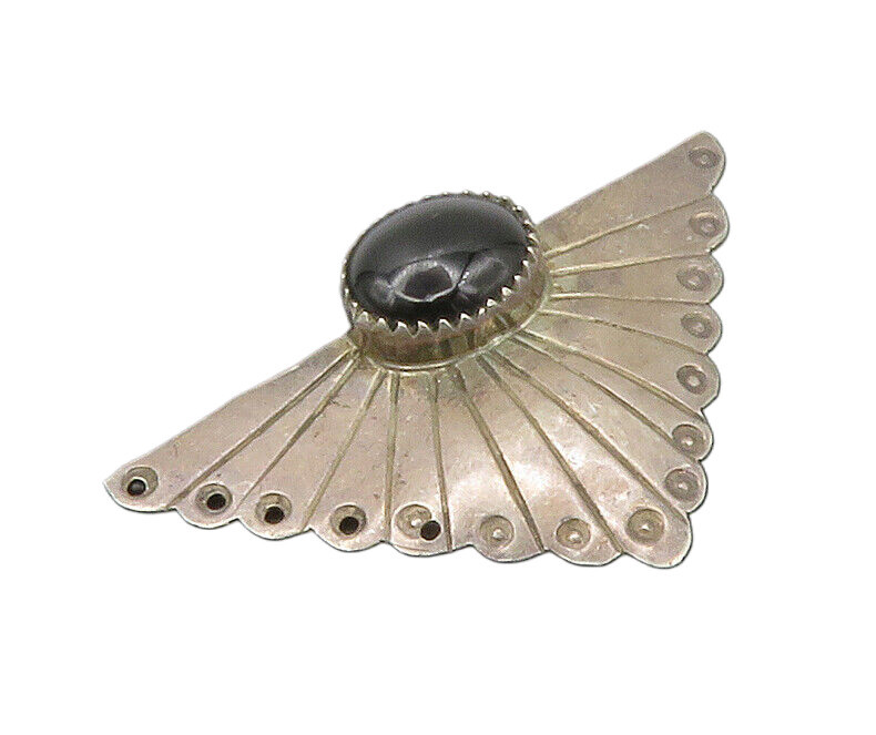 SOUTHWESTERN 925 Sterling Silver Vintage Cabochon Black Onyx Pendant PT13669