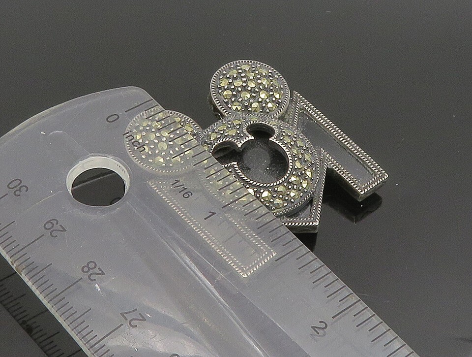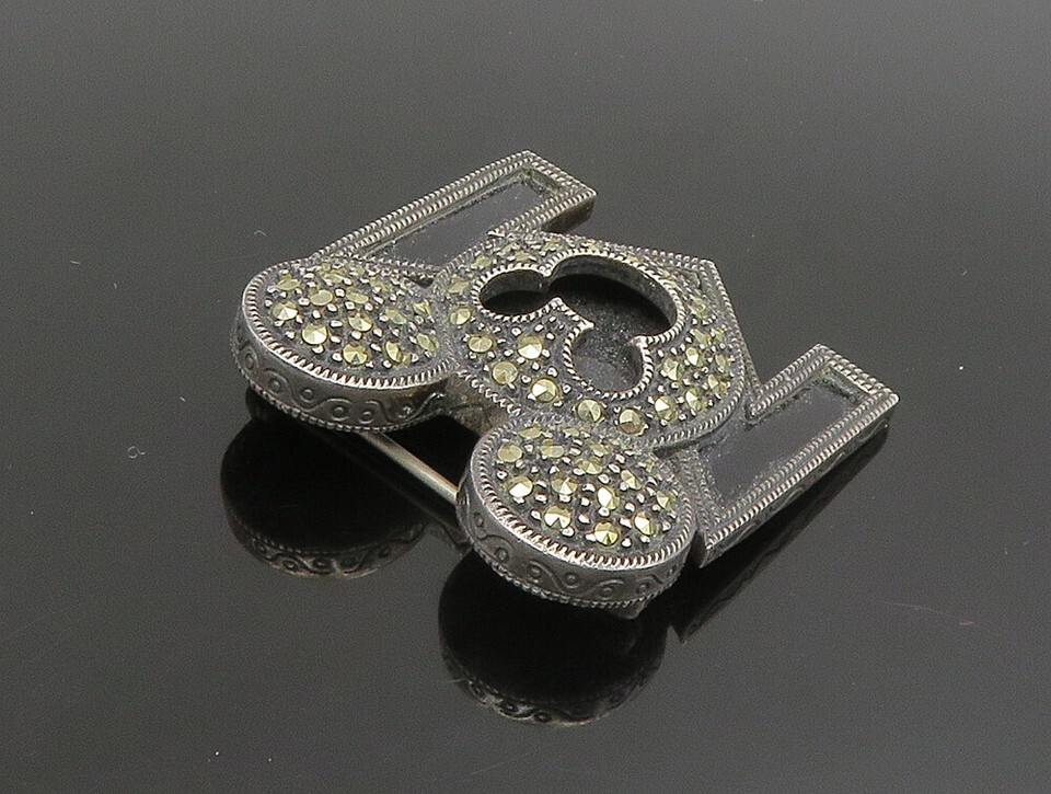 JUDITH JACK 925 Silver Vintage Onyx & Marcasite Mickey Ears Brooch Pin BP9547