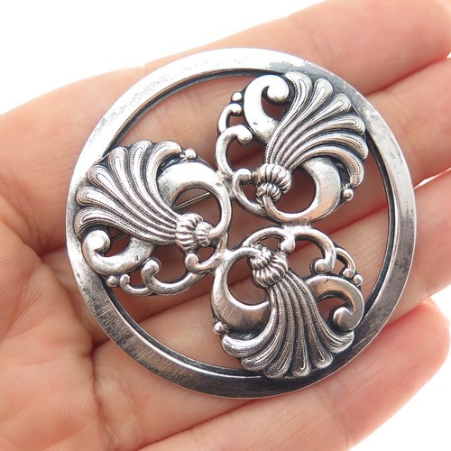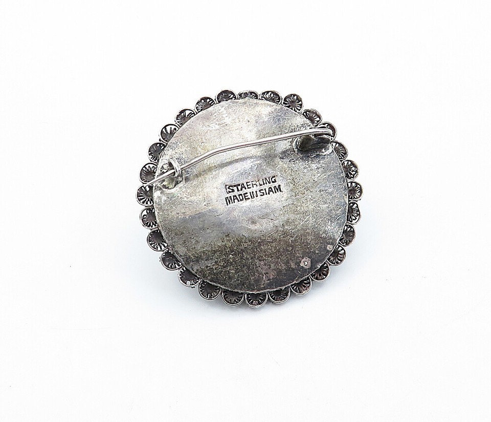 SIAM 925 Sterling Silver Vintage Antique Oxidized Floral Brooch Pin BP1181