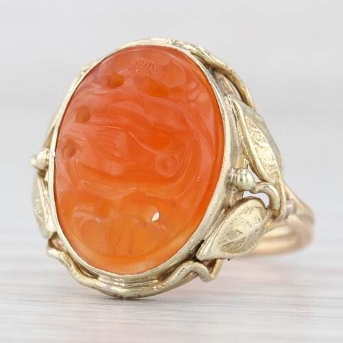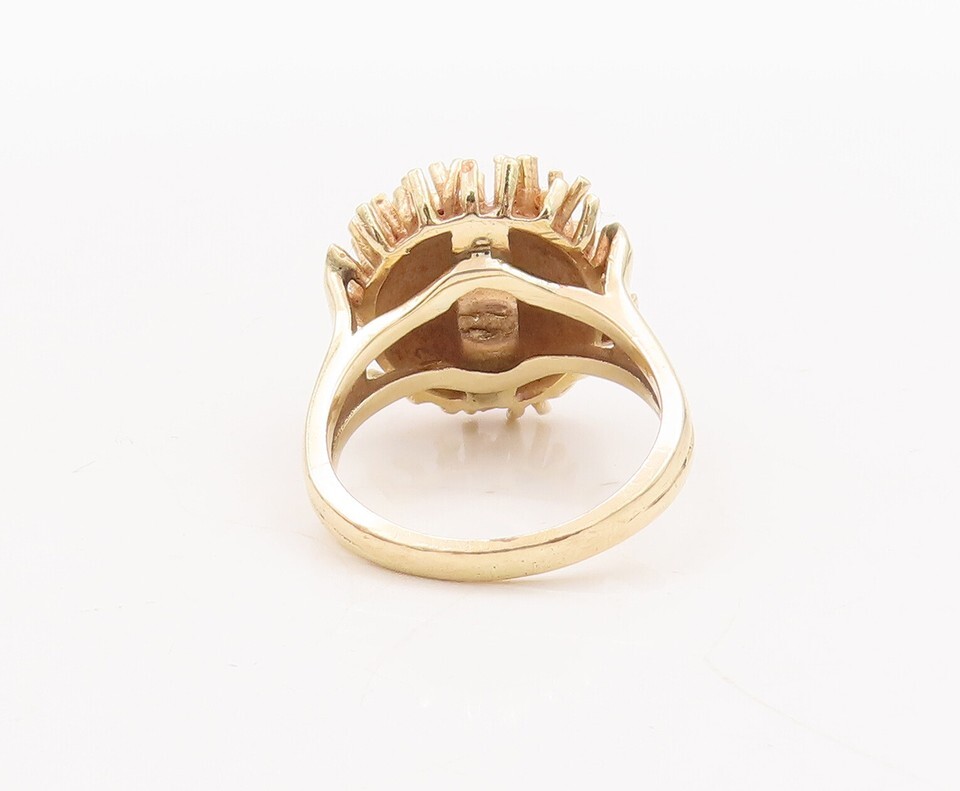 Authenticity Guarantee 14K GOLD Vintage Ring Solid Spikey Carved Flower Dome...