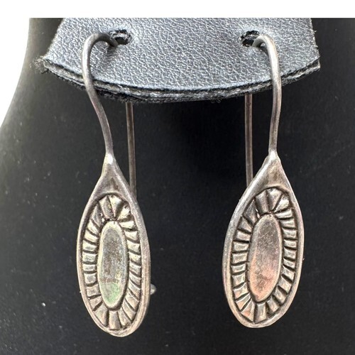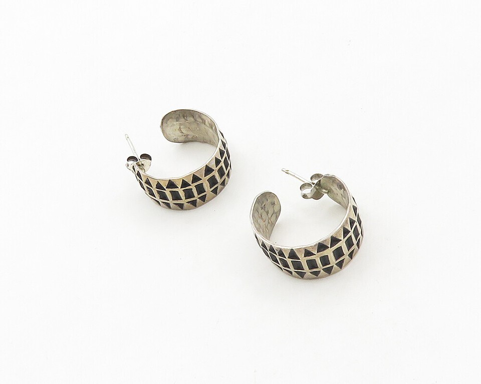 SOUTHWESTERN 925 Sterling Silver Vintage Oxidized Pattern JHoop Earrings EG9277