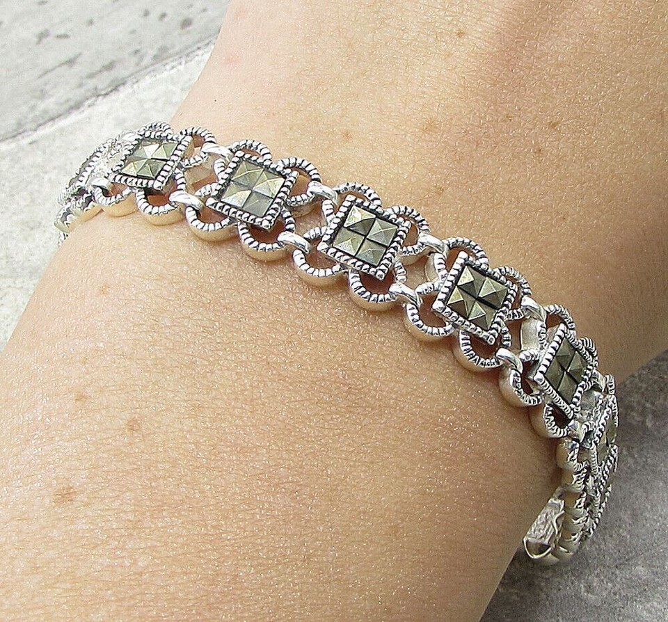 925 Sterling Silver Marcasite Linked Floral and 50 similar items