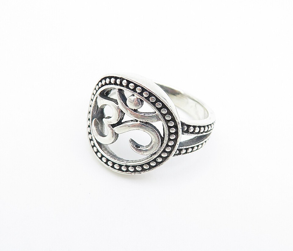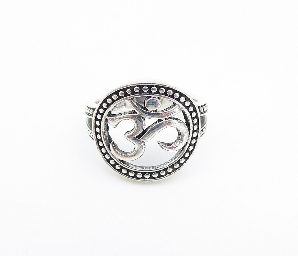 925 Sterling Silver Vintage Om Spiritual Symbol Band Ring Sz 4.5 RG8101