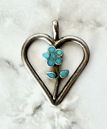 SOUTHWESTERN 925 Silver Vintage Inlaid Turquoise Patterned Pendant PT13024