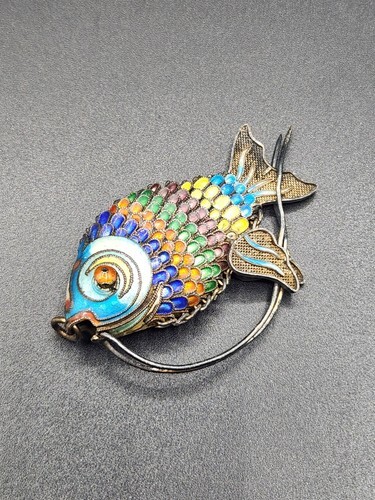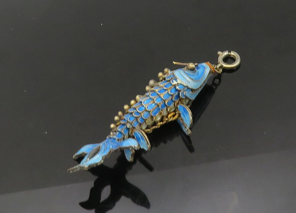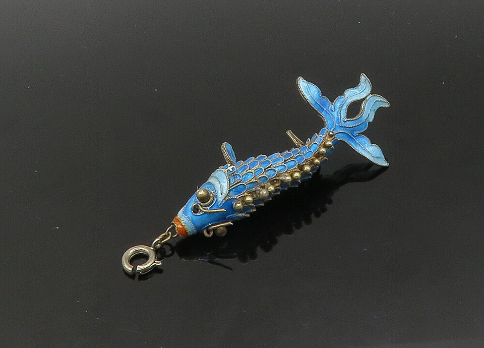 925 Sterling Silver Vintage Blue Enamel Koi and similar items