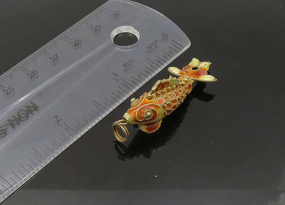 925 Sterling Silver Vintage Enamel Hollow Koi Fish Pendant (MOVES) PT17595