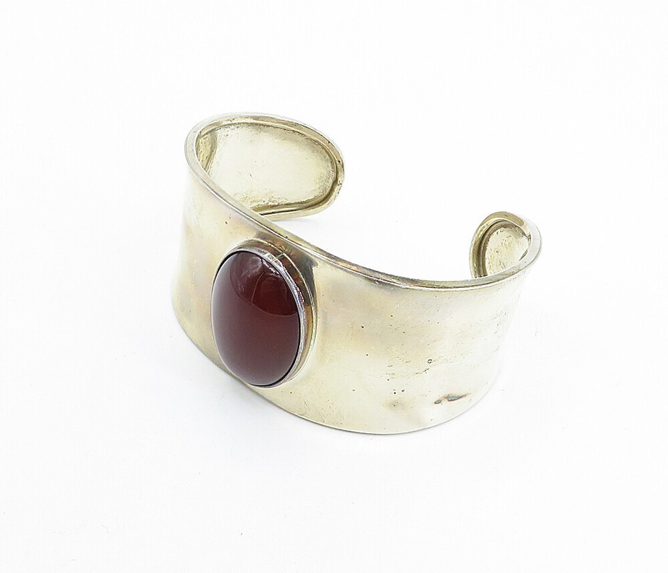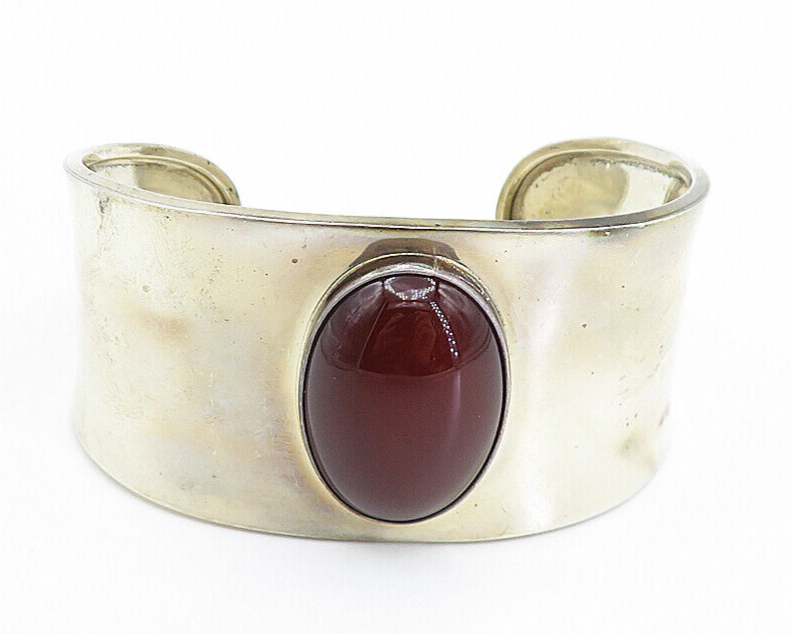 CII MEXICO 925 Silver Vintage Cabochon Cut Carnelian Cuff Bracelet BT3102